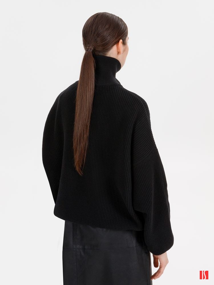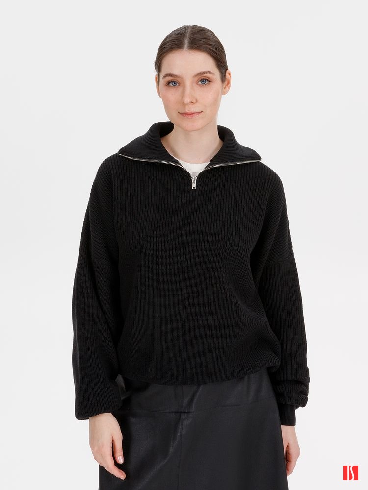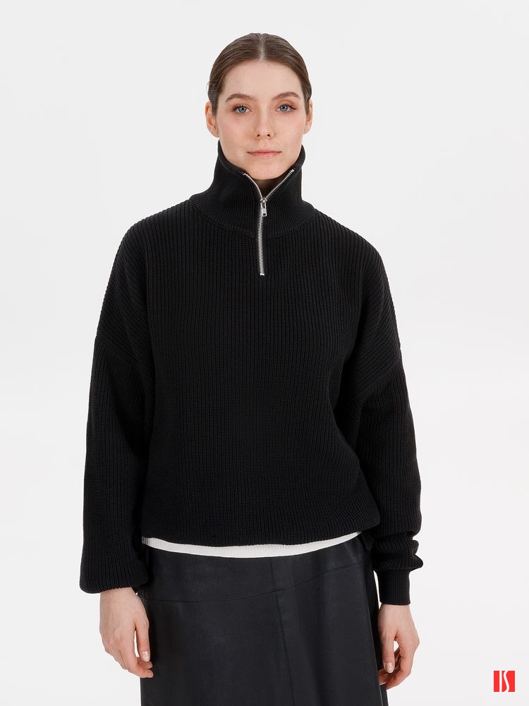 Siluetti Birne — плотный джемпер фактурной вязки со спущенной линией плеча позволит добавить в силуэт мягких линий и ненавязчивого объема, а также создать современный модный образ в лаконичном актуальном стиле, отдав при этом дань беспроигрышной классике. Дополнительным акцентом служит высокая горловина на молнии, а широкая резинка на рукавах и по нижнему краю изделия гарантирует максимальный комфорт.