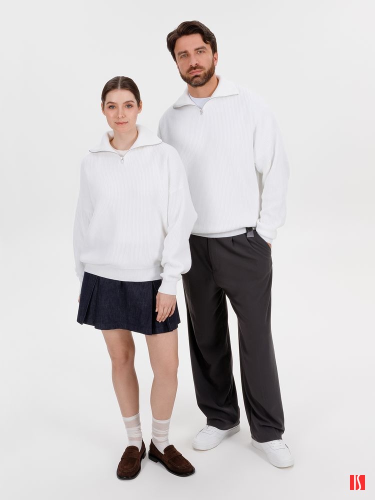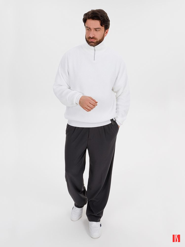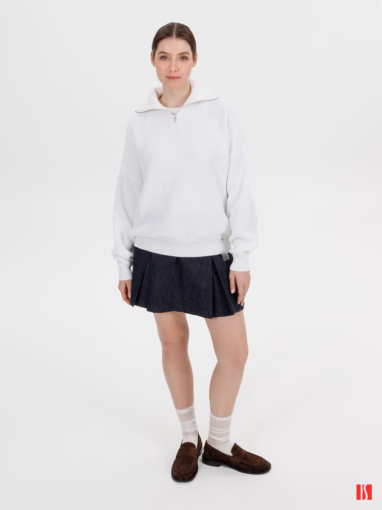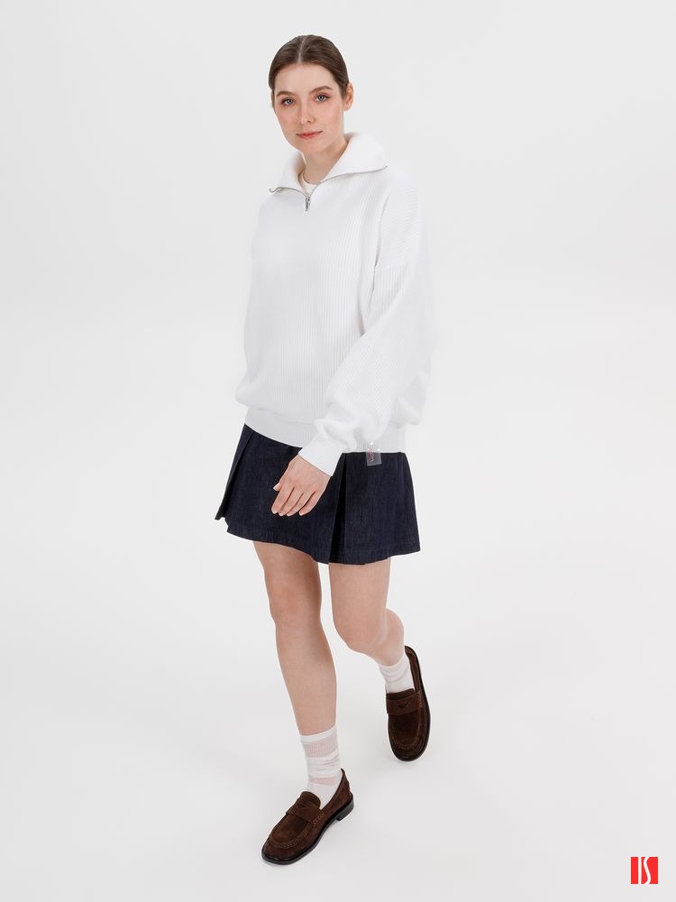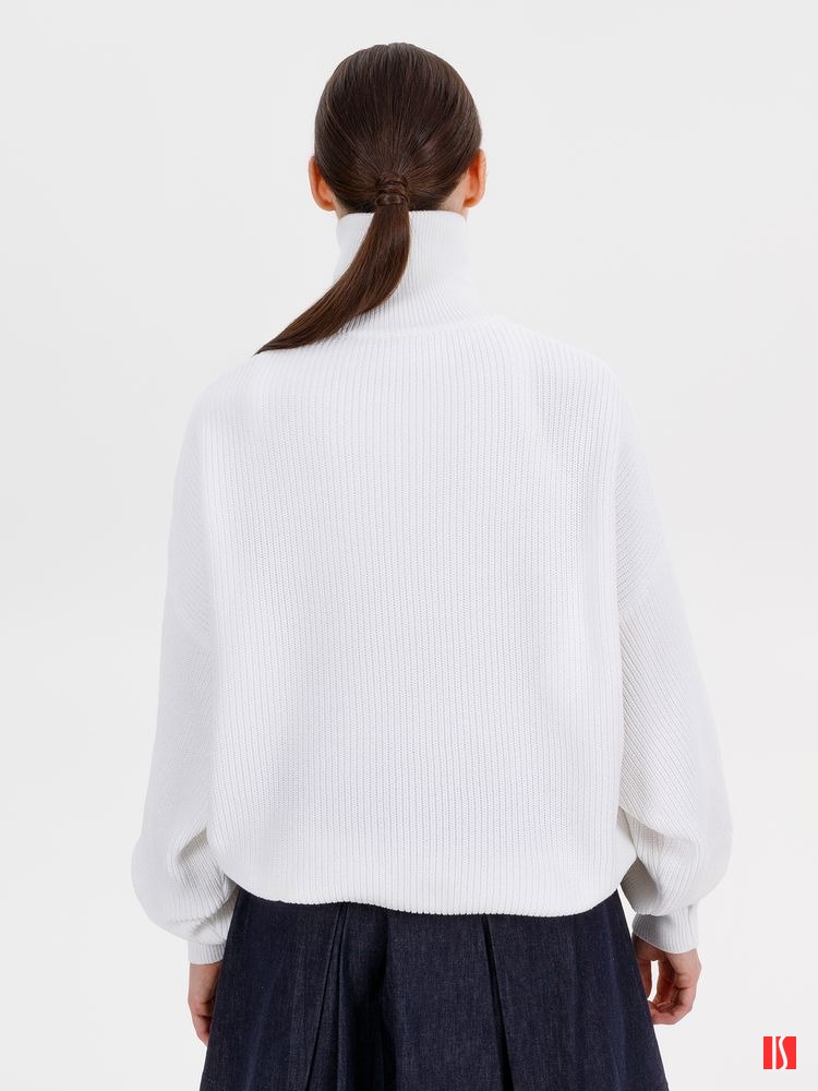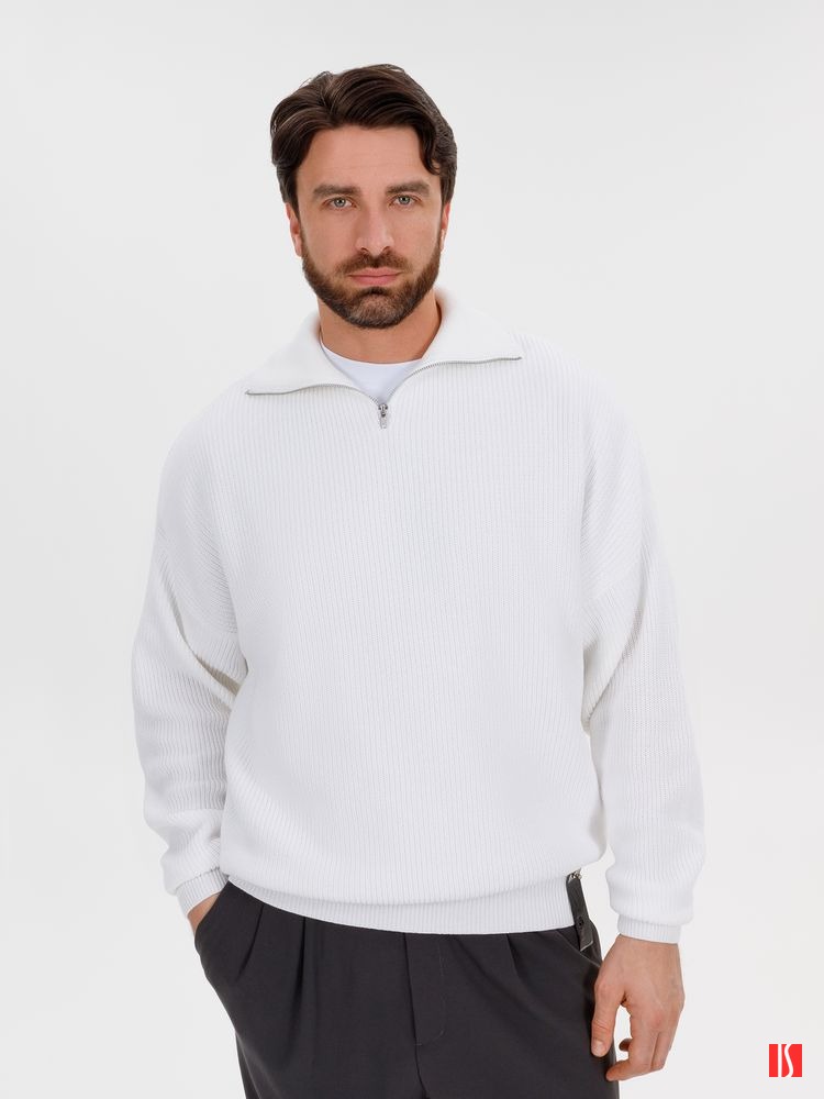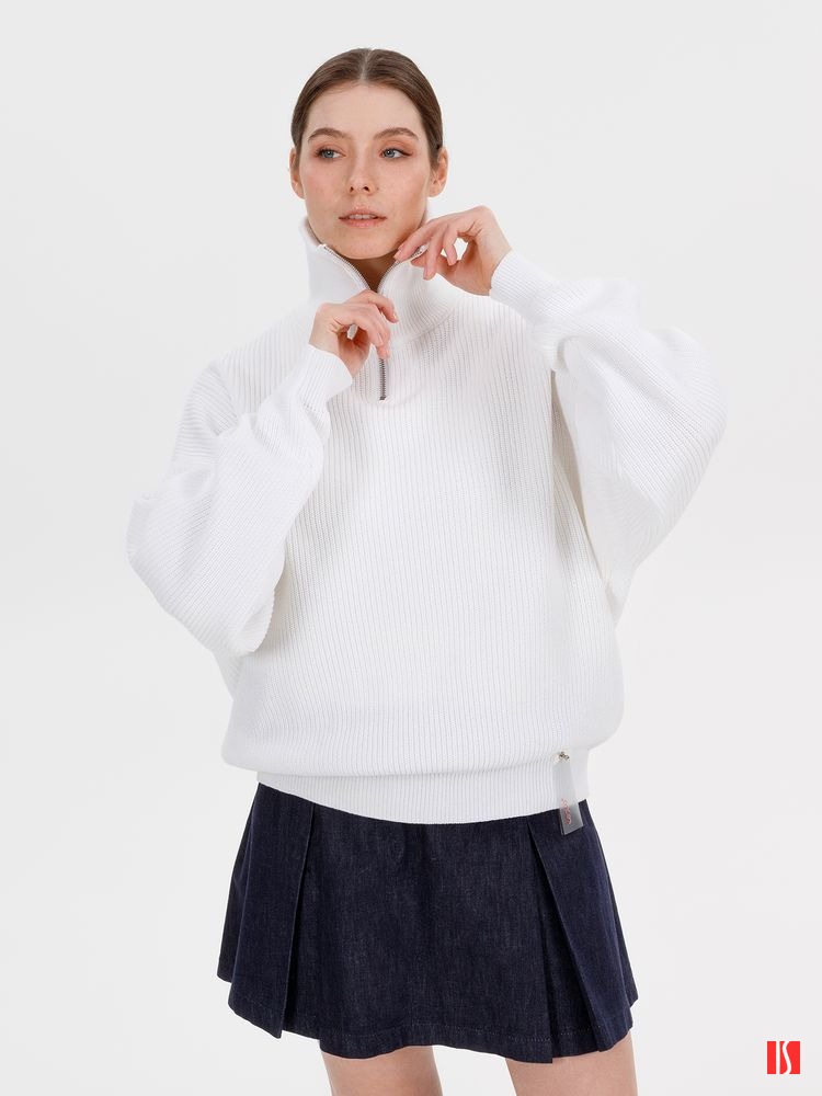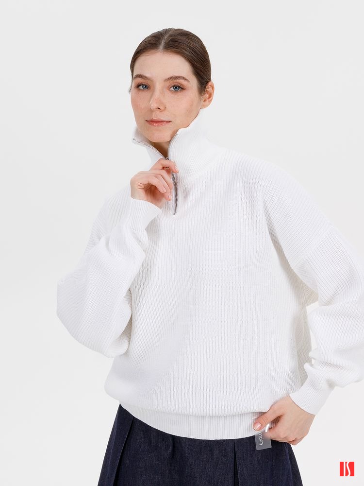 Siluetti Birne — плотный джемпер фактурной вязки со спущенной линией плеча позволит добавить в силуэт мягких линий и ненавязчивого объема, а также создать современный модный образ в лаконичном актуальном стиле, отдав при этом дань беспроигрышной классике. Дополнительным акцентом служит высокая горловина на молнии, а широкая резинка на рукавах и по нижнему краю изделия гарантирует максимальный комфорт.