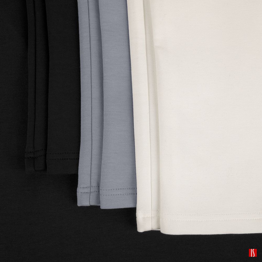 Коллекция текстиля Manevr Sport с продуманным анатомическим кроем выполнена из высокотехнологичного трехслойного материала, известного как ткань скуба или трикотажный неопрен, в самом центре которого спрятаны объемные нити текстурированного полиэстера.