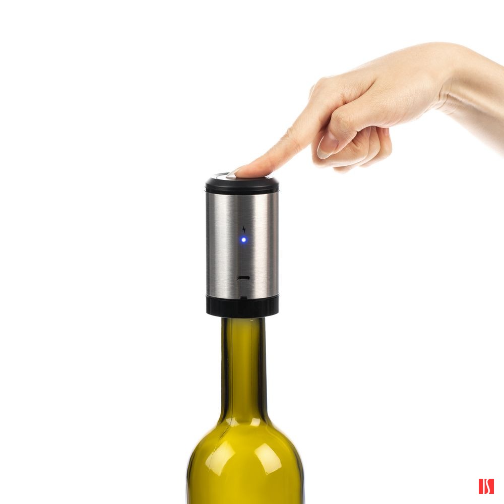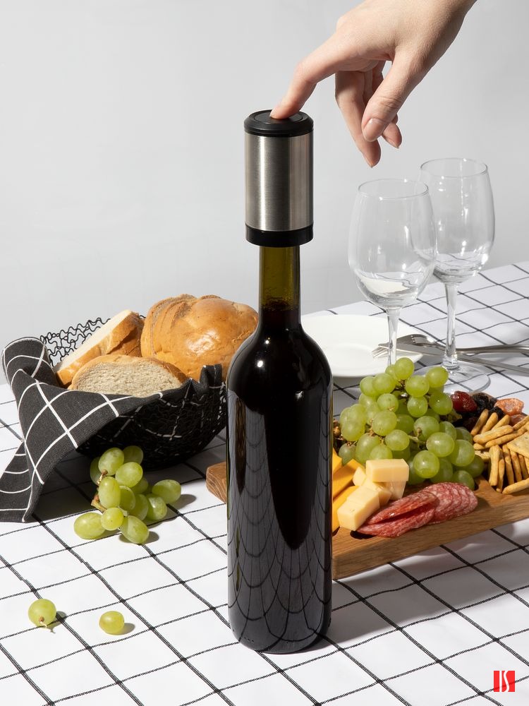 Электрическая пробка Tuoretta поможет одним нажатием кнопки удалить из бутылки весь воздух и сохранить напиток свежим до 7 дней. Внутренняя часть изготовлена из пищевого силикона и не добавляет никаких посторонних ароматов содержимому бутылки.