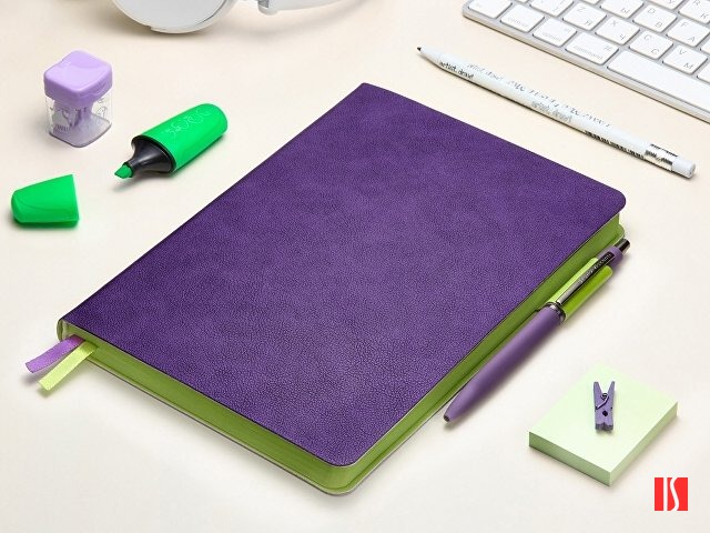 Ежедневник А5 датированный "Boston" 2026, фиолетовый с салатовым обрезом
