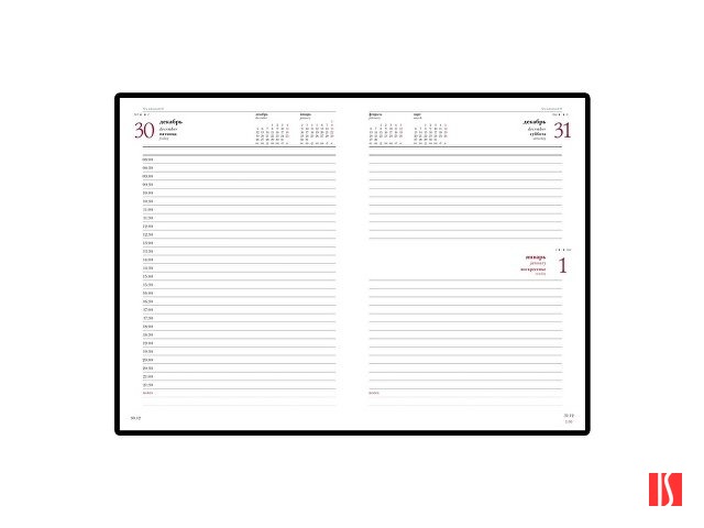 Переплет блока книжный. Цвет страниц белый с двухцветной печатью. Есть страница для личных данных, 16 страниц справочной информации, 19 страниц телефонного справочника и календарь на 2025-2026 года. Стандартный размер блока А5 (140 Х 200 мм). Заказать с нанесением логотипа от компании «Синтезис».
