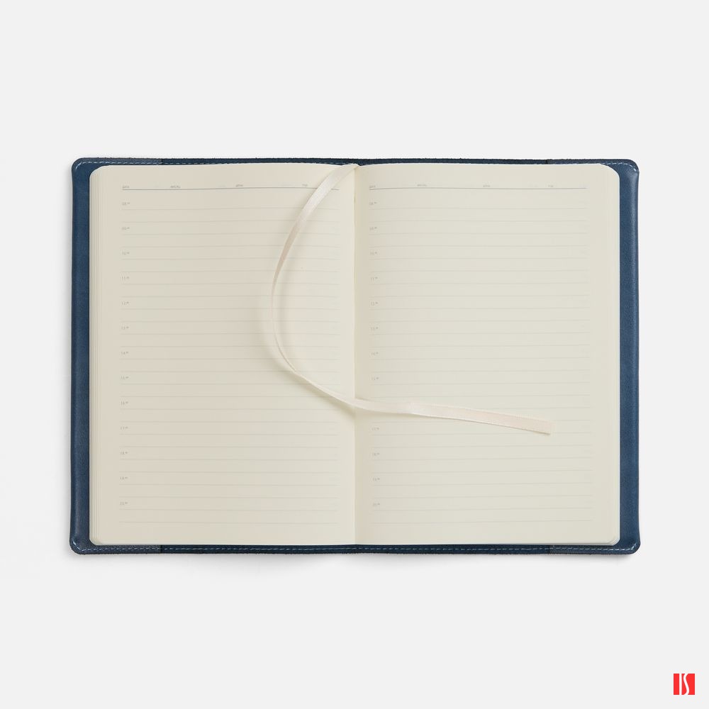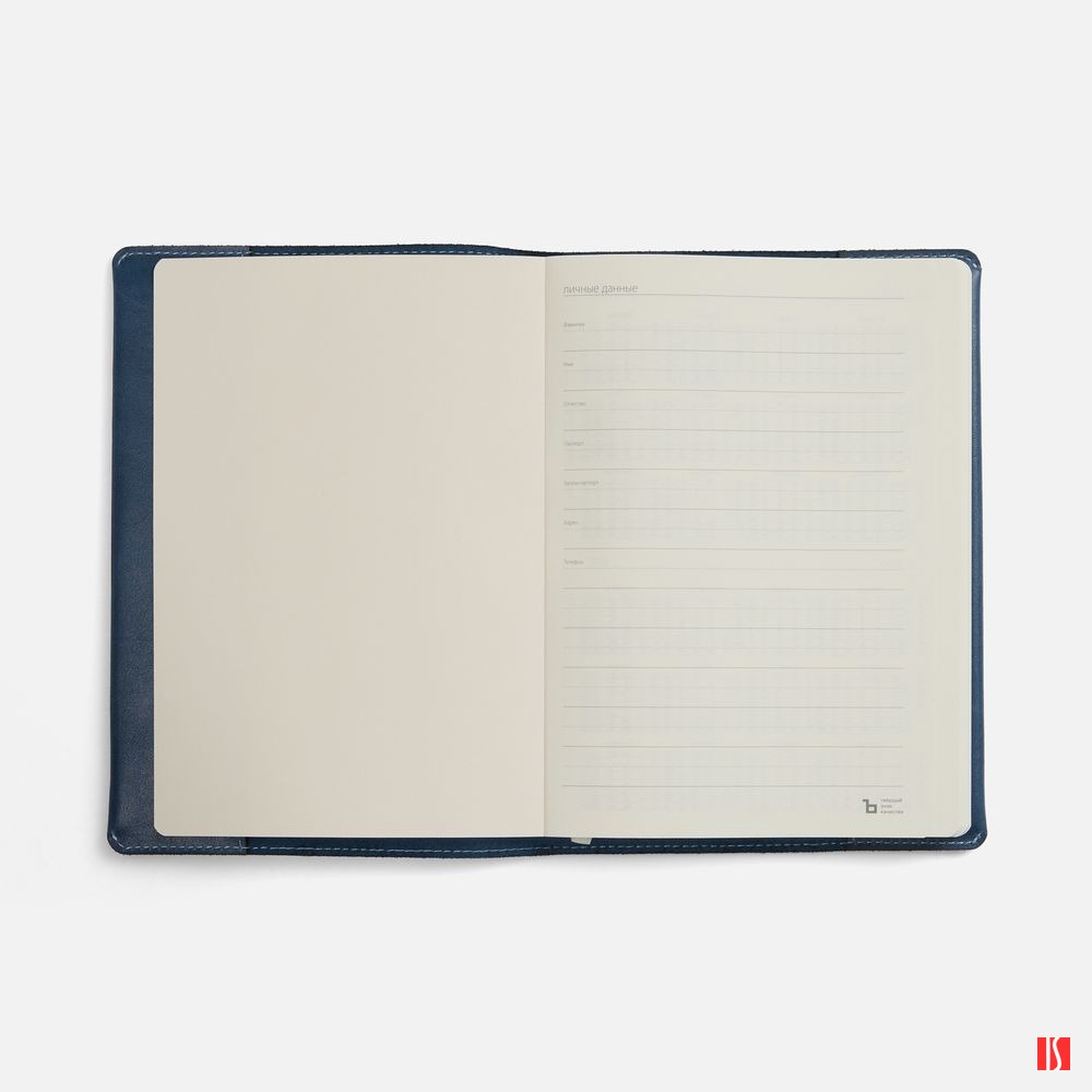 Ежедневник в мягкой суперобложке из натуральной кожи. Дополнен ляссе кремового цвета. Упакован в индивидуальную коробку.