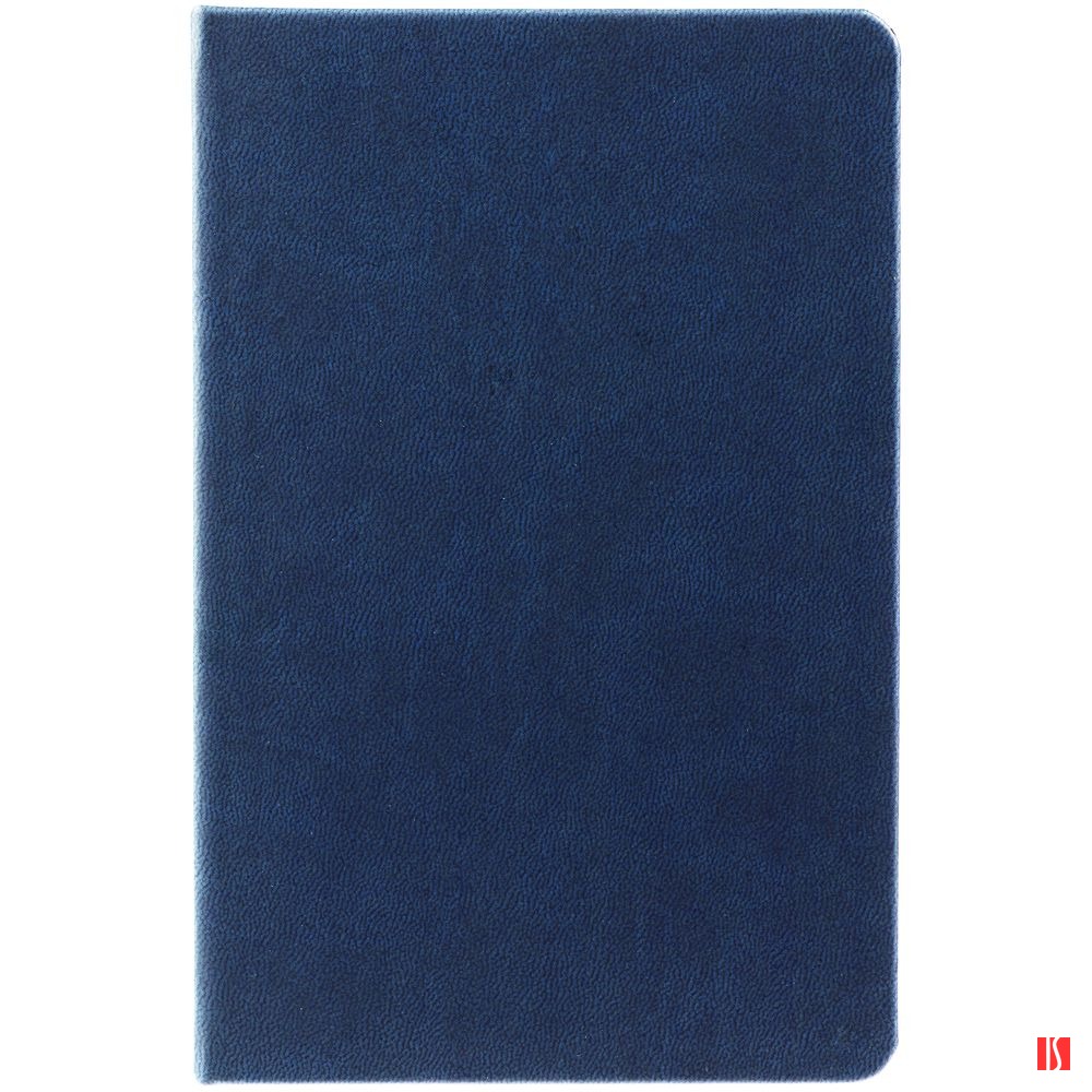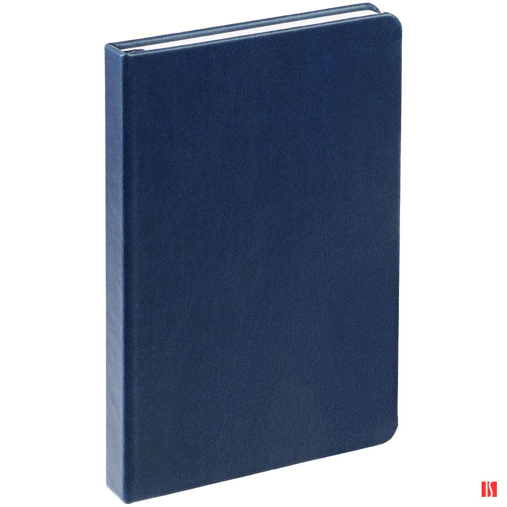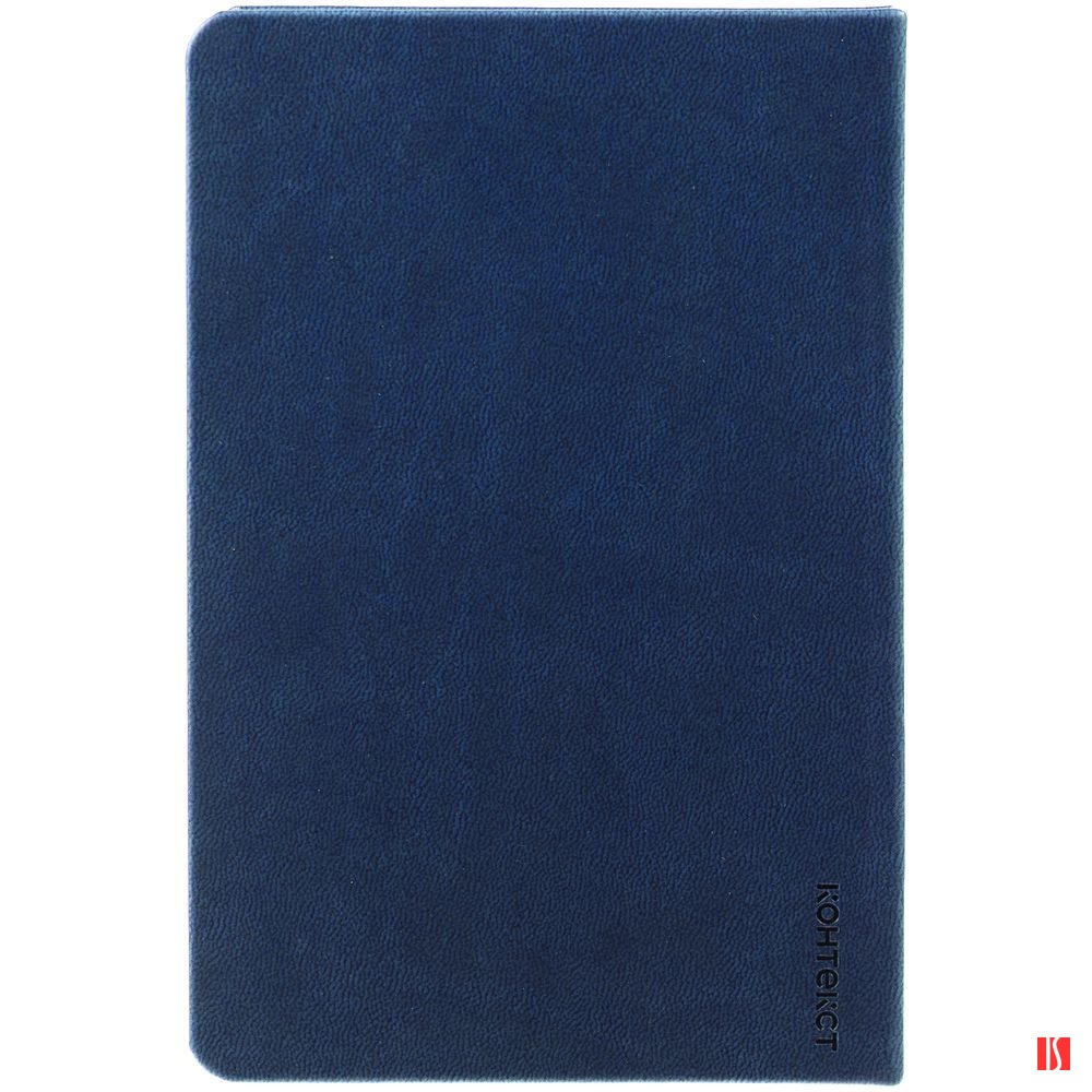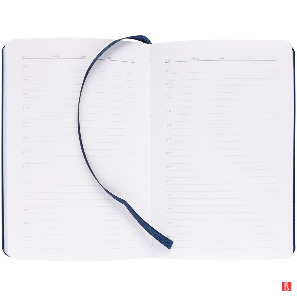 Ежедневник с твердой обложкой, выполнен из материала Latte, темно-синий ХХ, дополнен ляссе в цвет обложки.