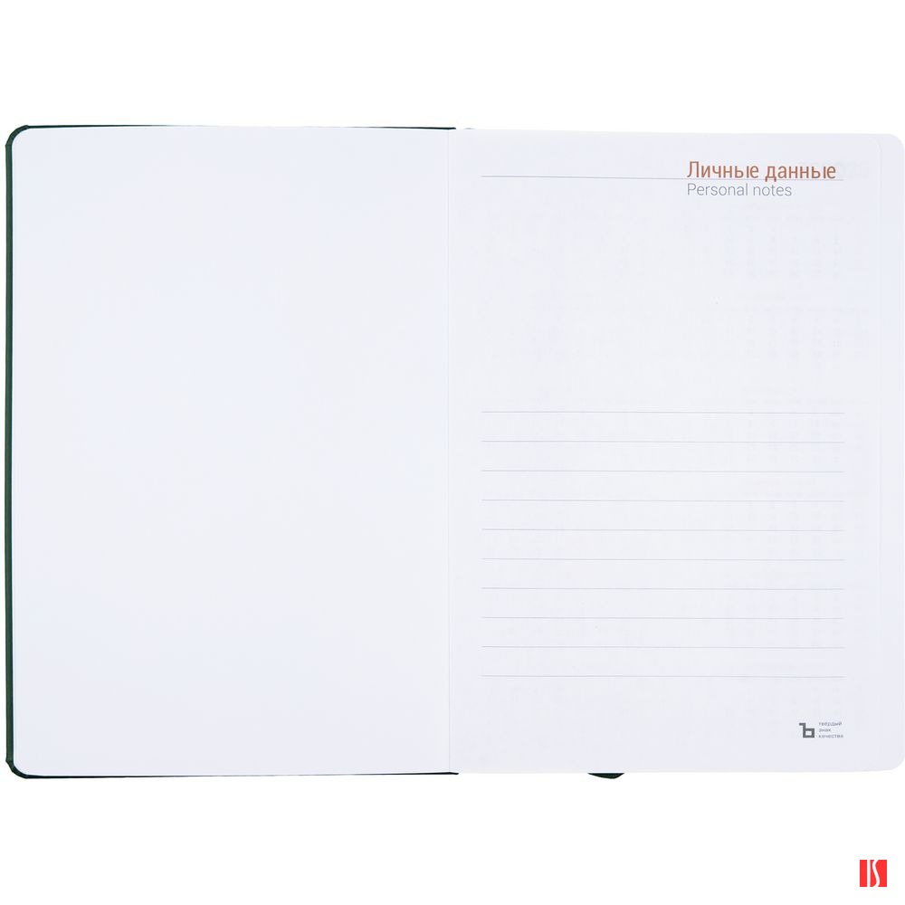 Ежедневник с твердой обложкой, выполнен из материала Latte, зеленый FF, дополнен ляссе в цвет обложки.