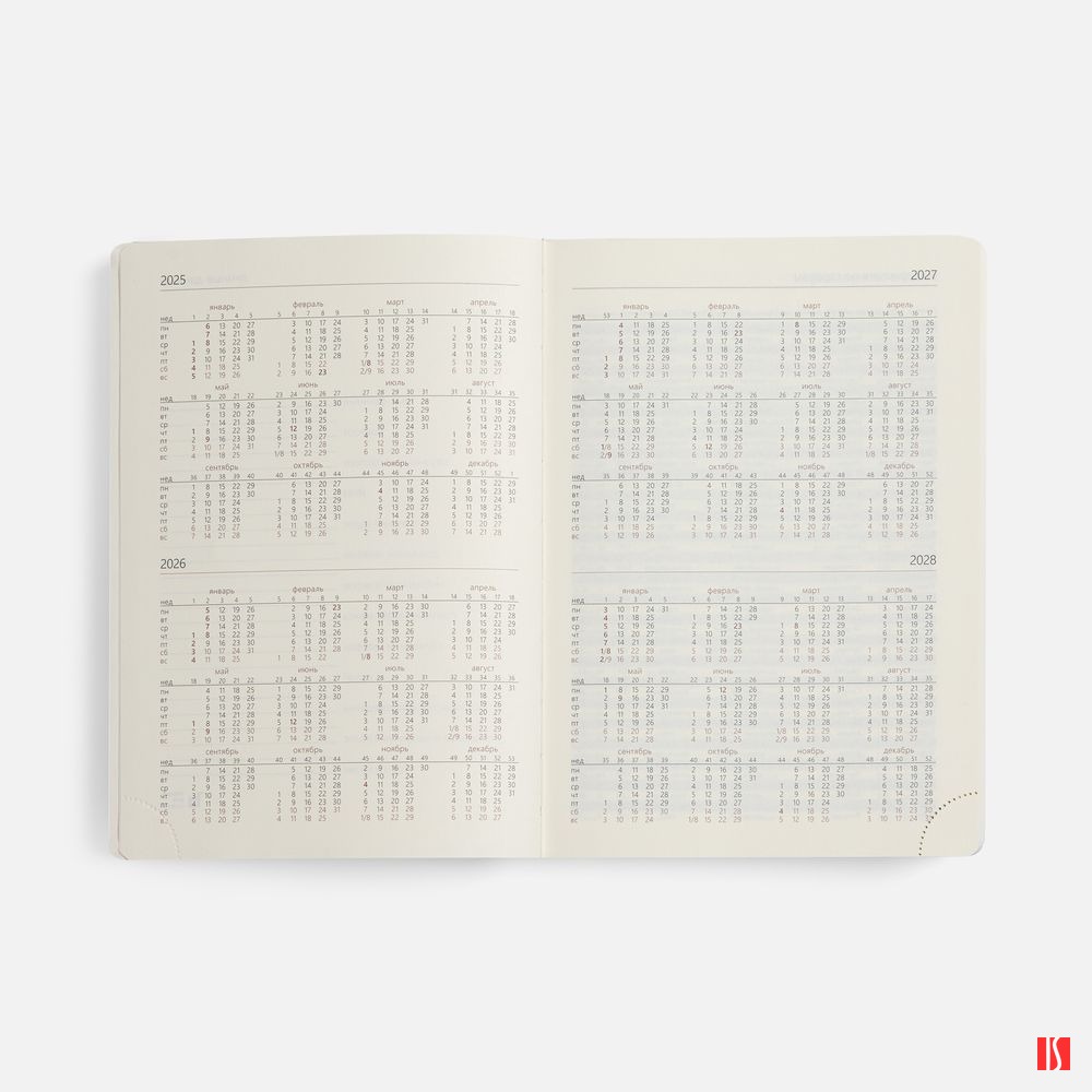 Ежедневник с твердой обложкой c поролоном, выполнен из материала Nubuck, темно-серый ЕЕ, дополнен капталом и ляссе черного цвета. Застежка — магнитный хлястик.