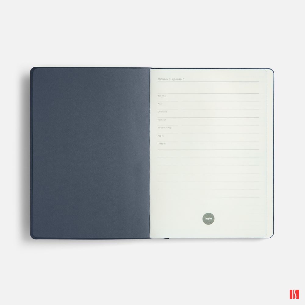 Ежедневник с гибкой обложкой, выполнен из материала Cowhide, дополнен ляссе в цвет обложки.
