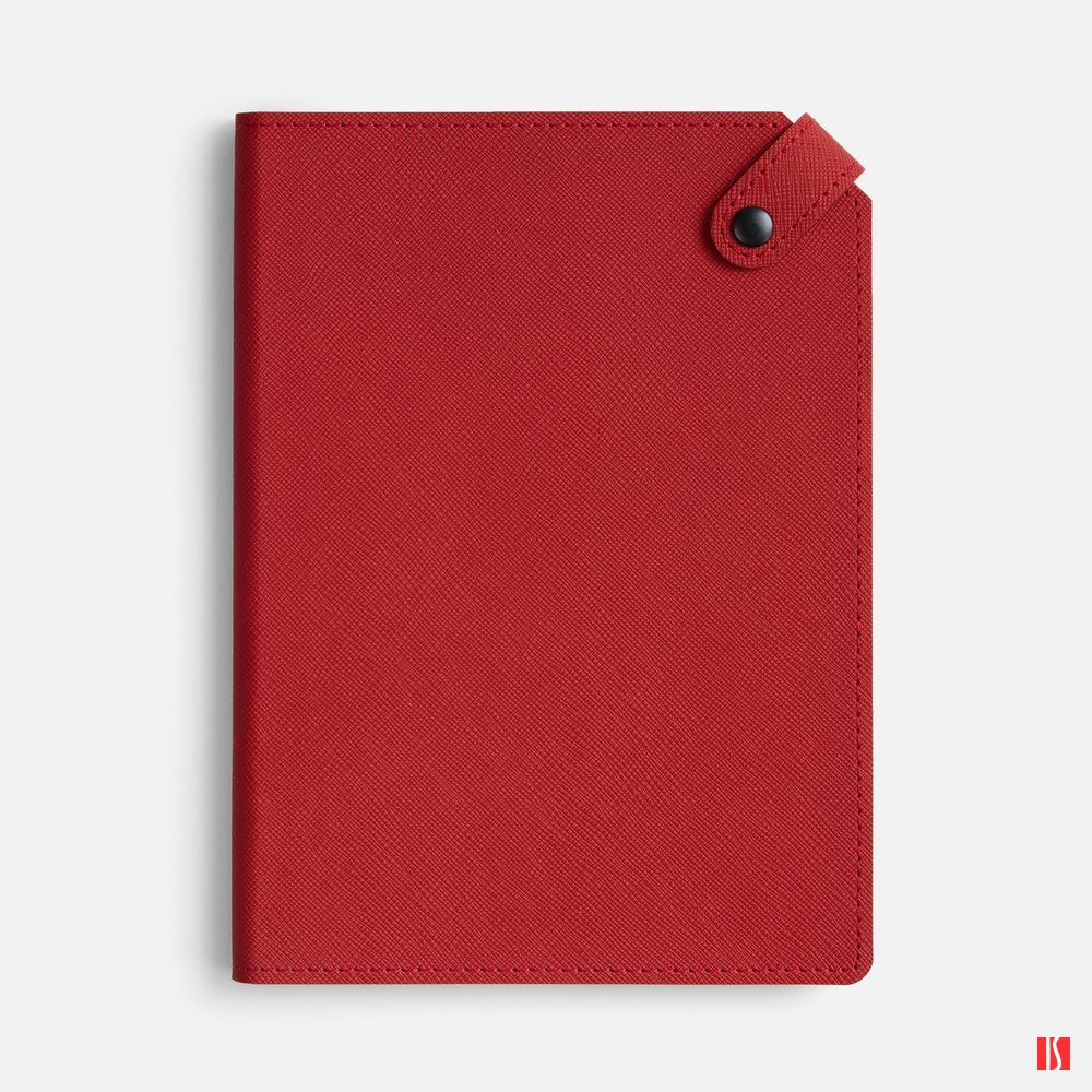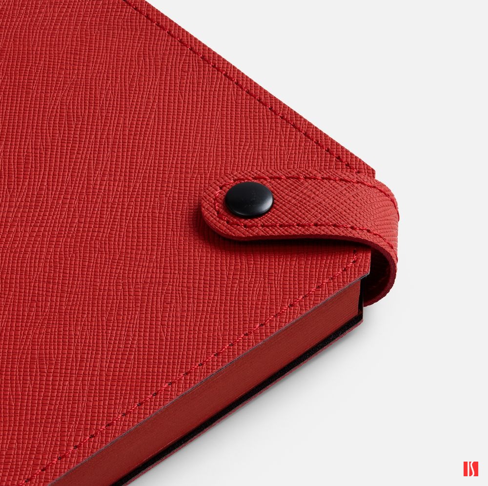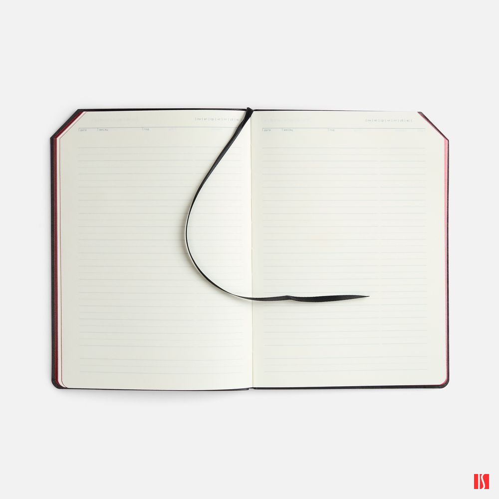 Ежедневник с гибкой обложкой, выполнен из материала Espresso, дополнен ляссе черного цвета и хлястиком на кнопке.