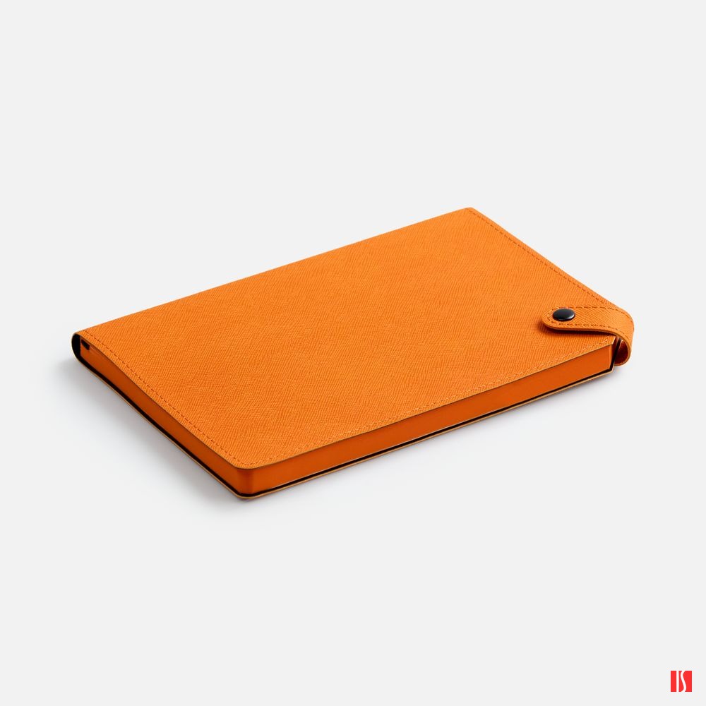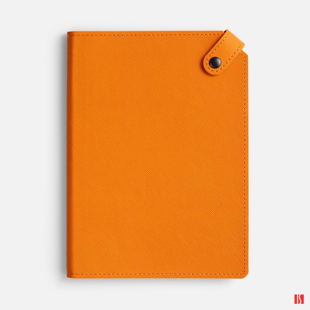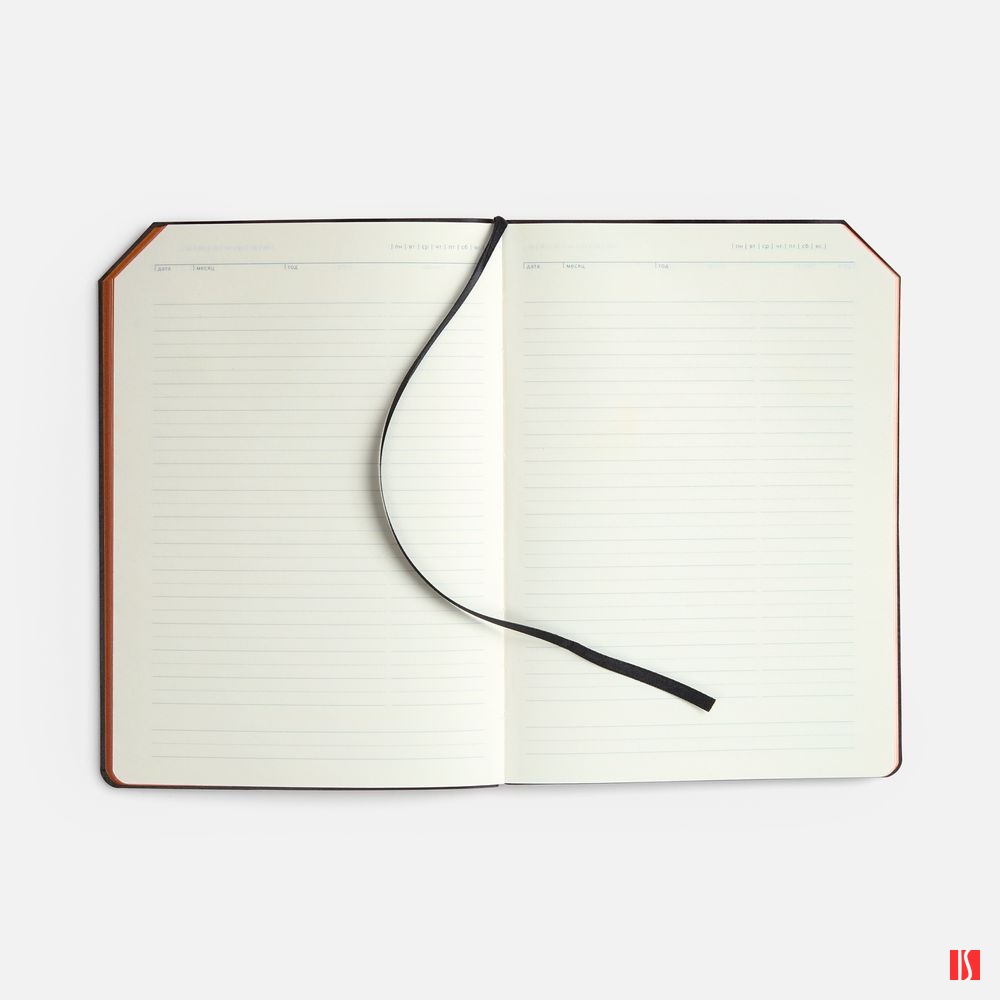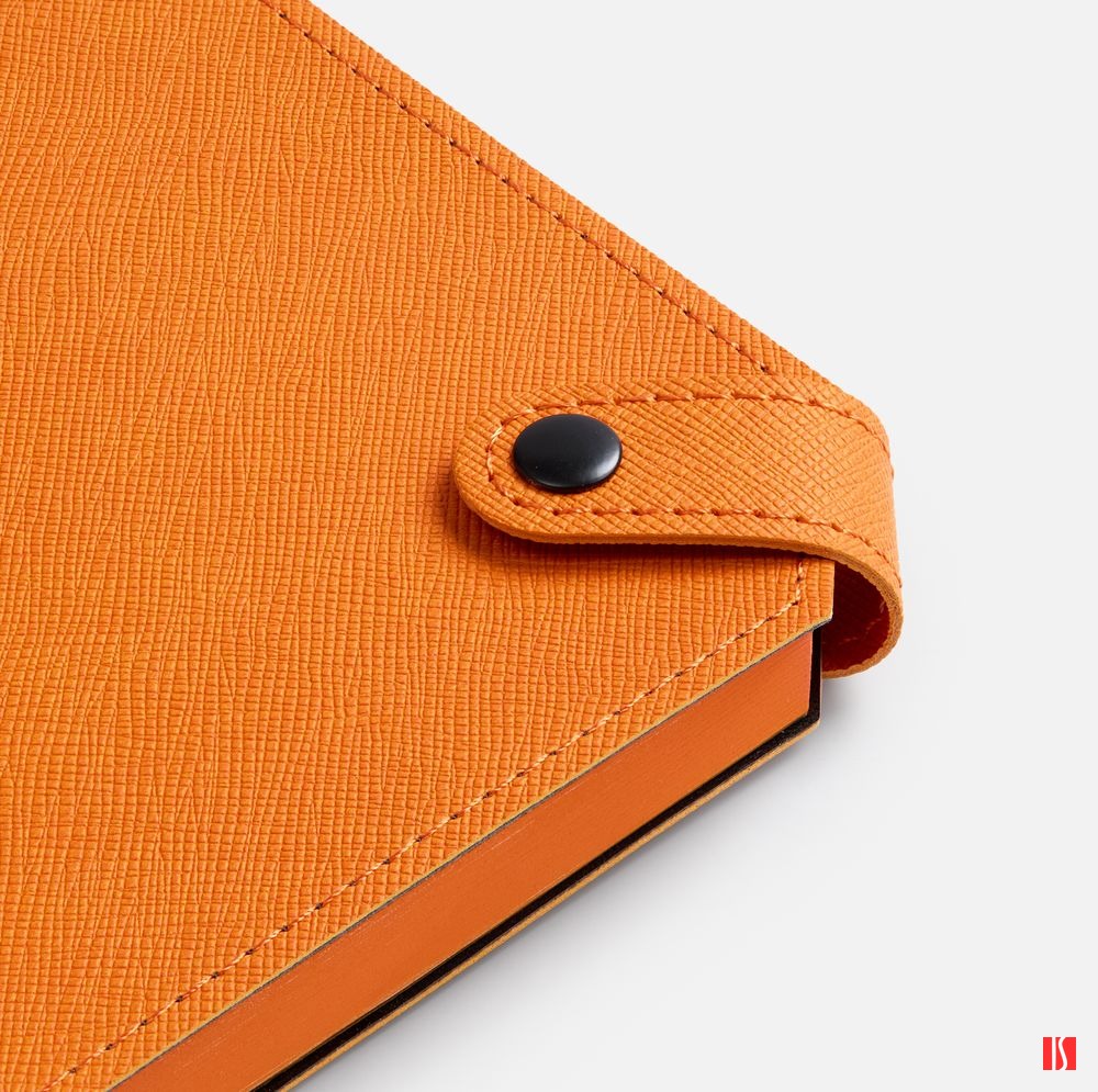 Ежедневник с гибкой обложкой, выполнен из материала Espresso, дополнен ляссе черного цвета и хлястиком на кнопке.