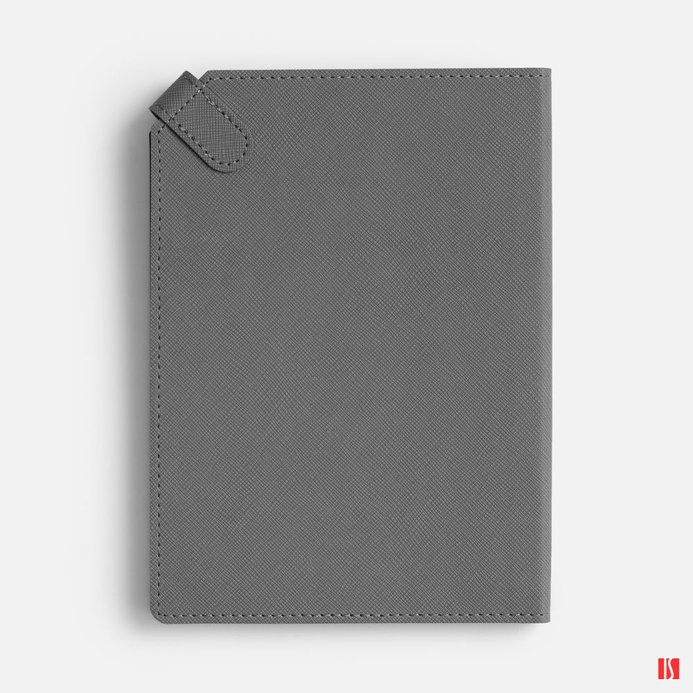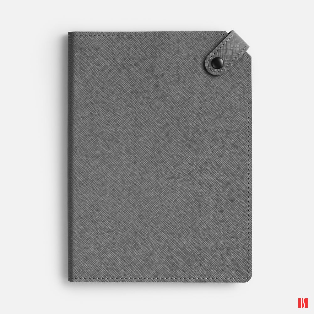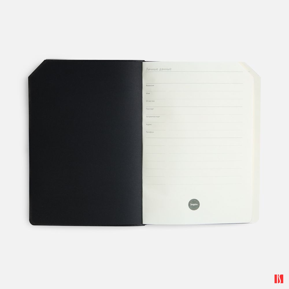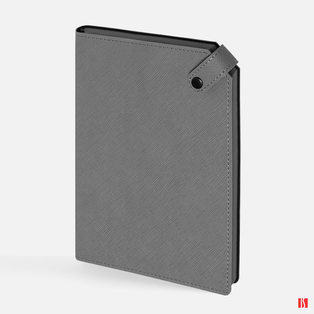Ежедневник с гибкой обложкой, выполнен из материала Espresso, дополнен ляссе черного цвета и хлястиком на кнопке.