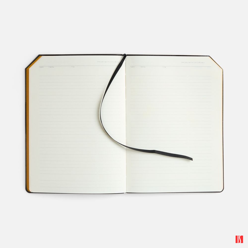 Ежедневник с гибкой обложкой, выполнен из материала Espresso, дополнен ляссе черного цвета и хлястиком на кнопке.