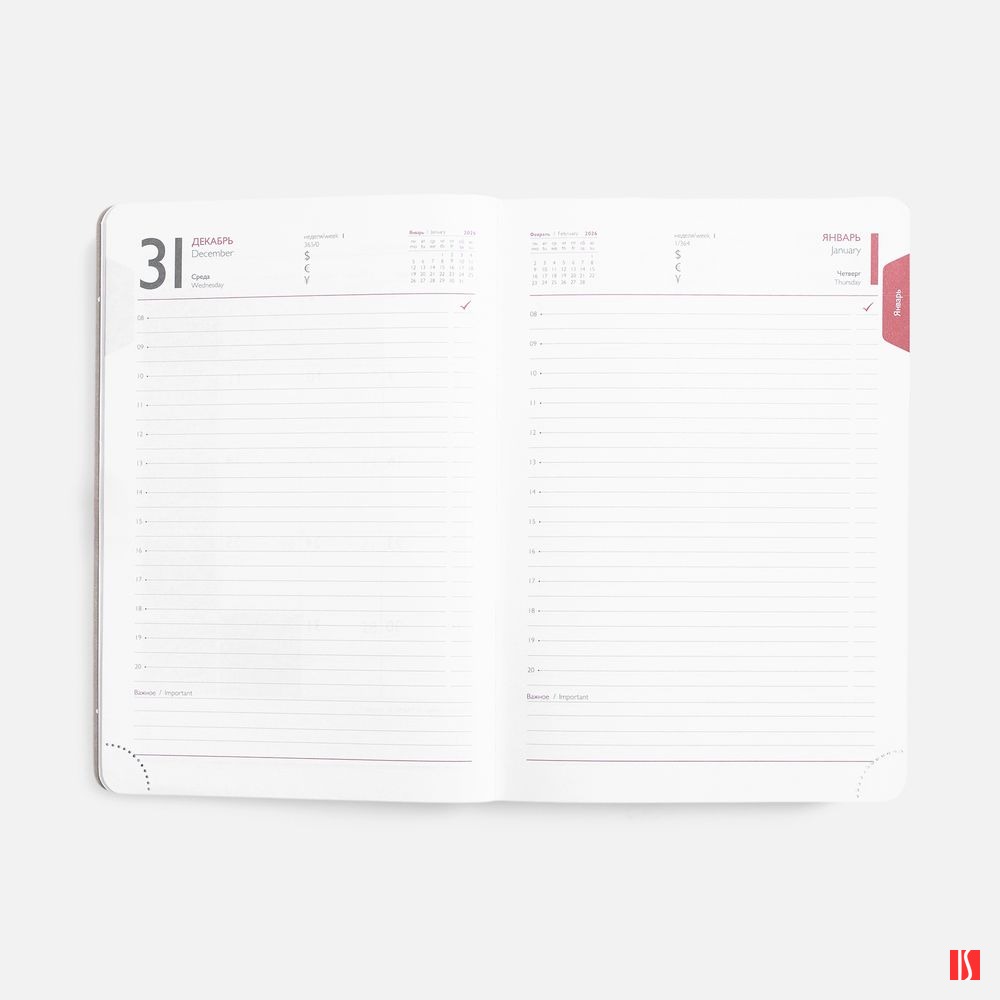 Ежедневник с твердой обложкой с поролоном из искусственной кожи Sarif, дополнен капталом и ляссе в цвет ежедневника.