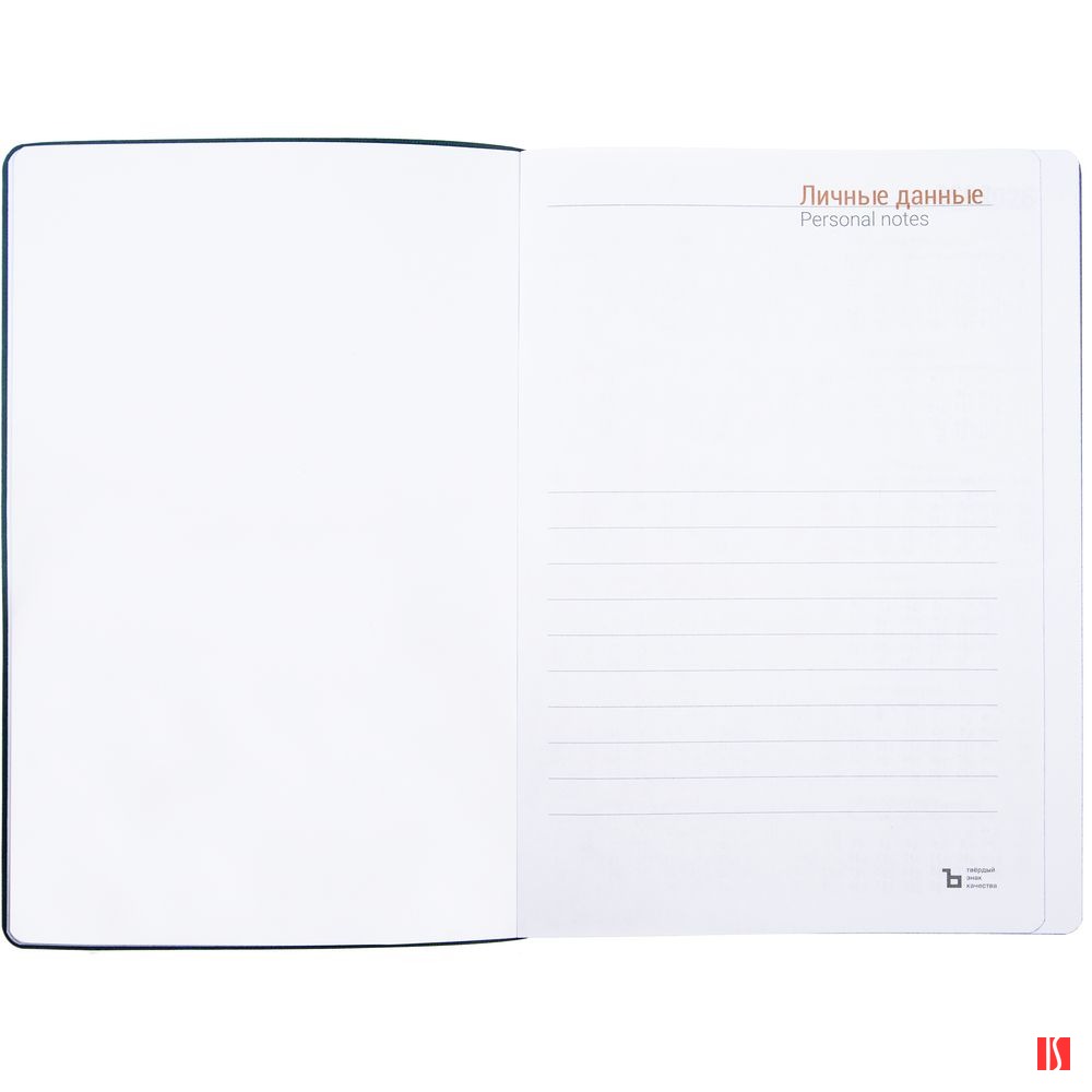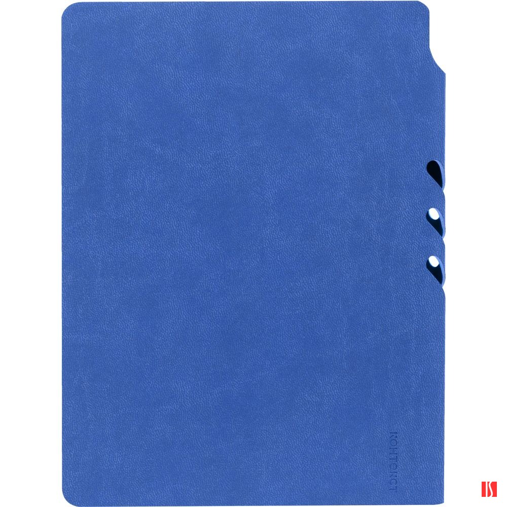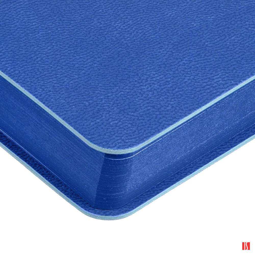 Гибкая обложка ежедневника выполнена из материала Latte, синий НН. Внутри корешка — специальное место для крепления ручки размером до 15х0,9 см.