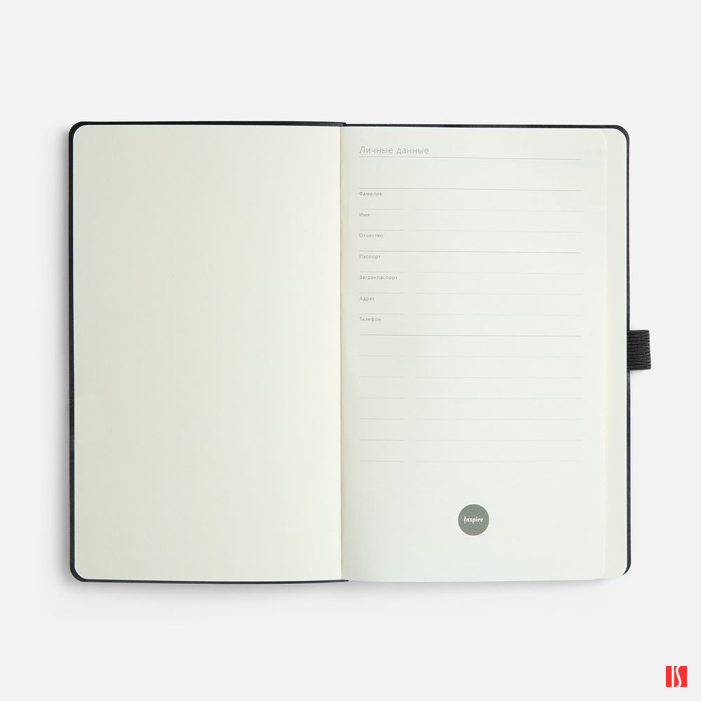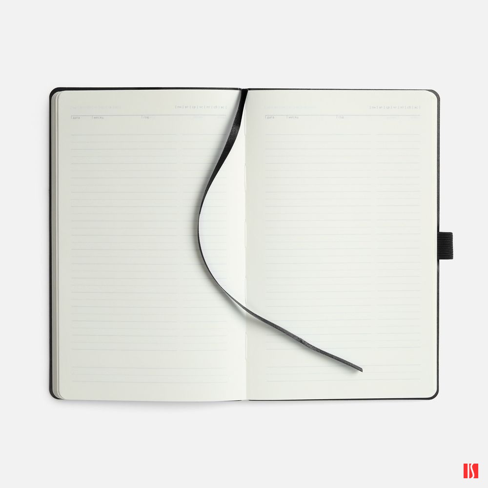 Ежедневник с гибкой обложкой, выполнен из материала Espresso, дополнен цветными ляссе и петлей-резинкой для ручки.