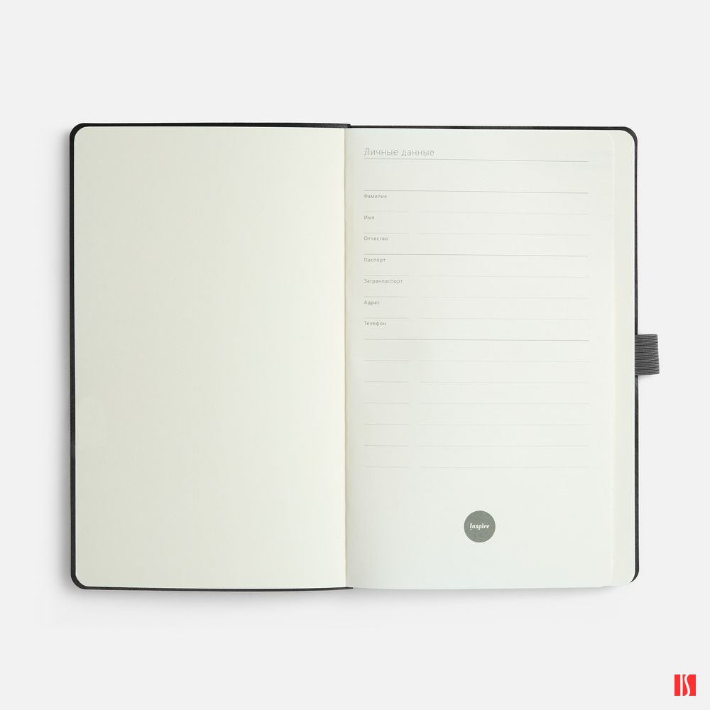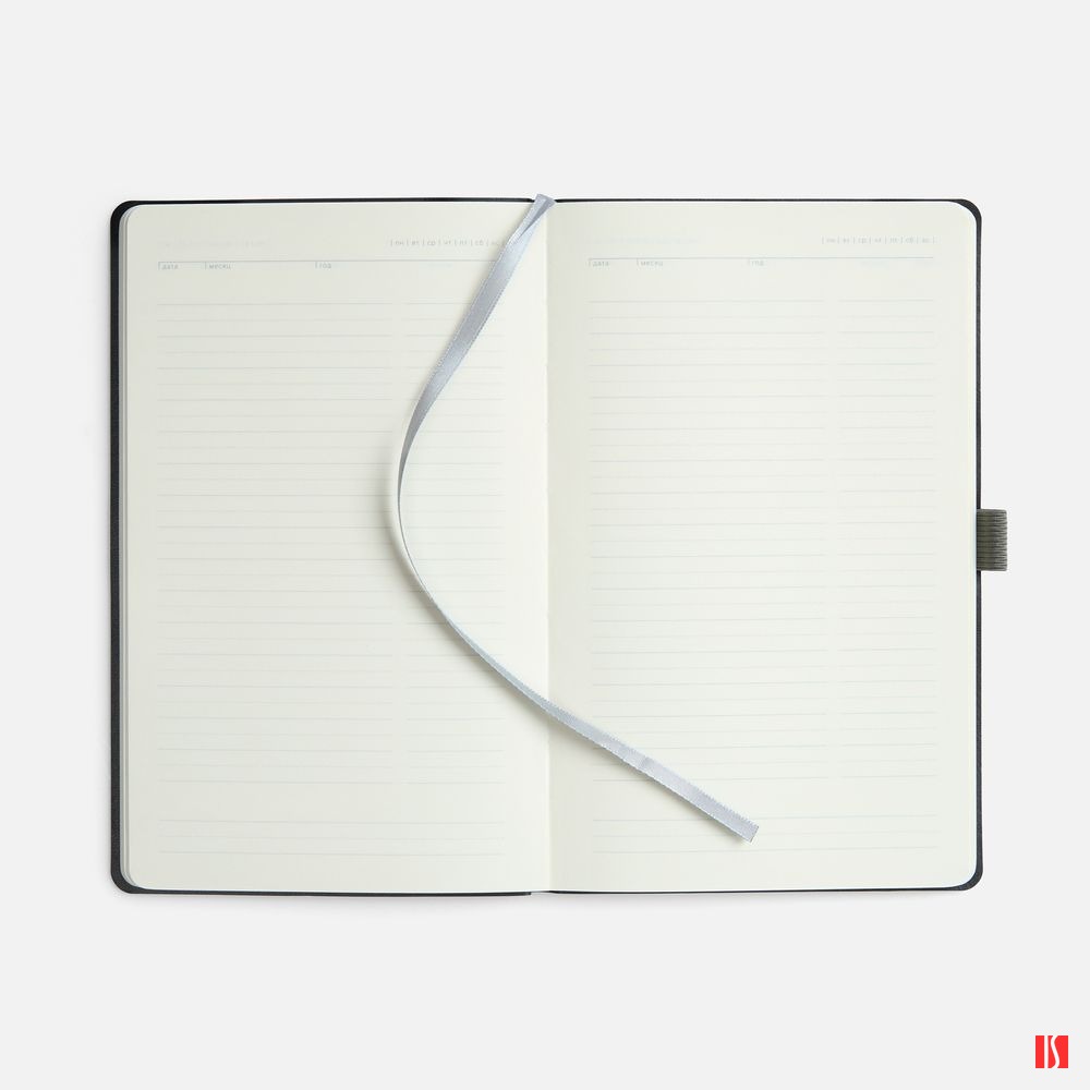 Ежедневник с гибкой обложкой, выполнен из материала Espresso, дополнен цветными ляссе и петлей-резинкой для ручки.