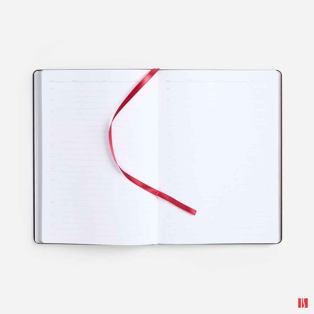 Ежедневник с гибкой обложкой, выполнен из материала Nebraska, винный SS, дополнен ляссе бордового цвета.