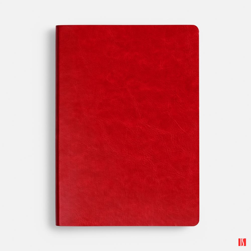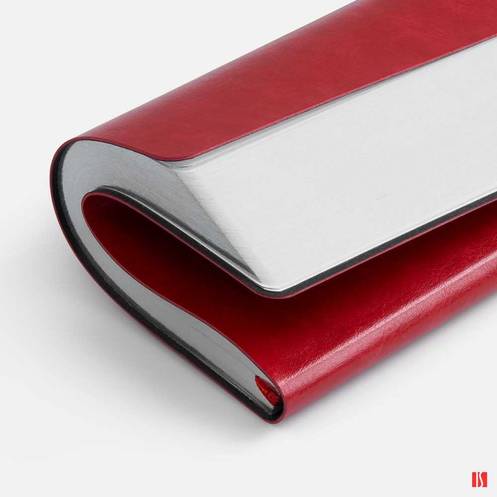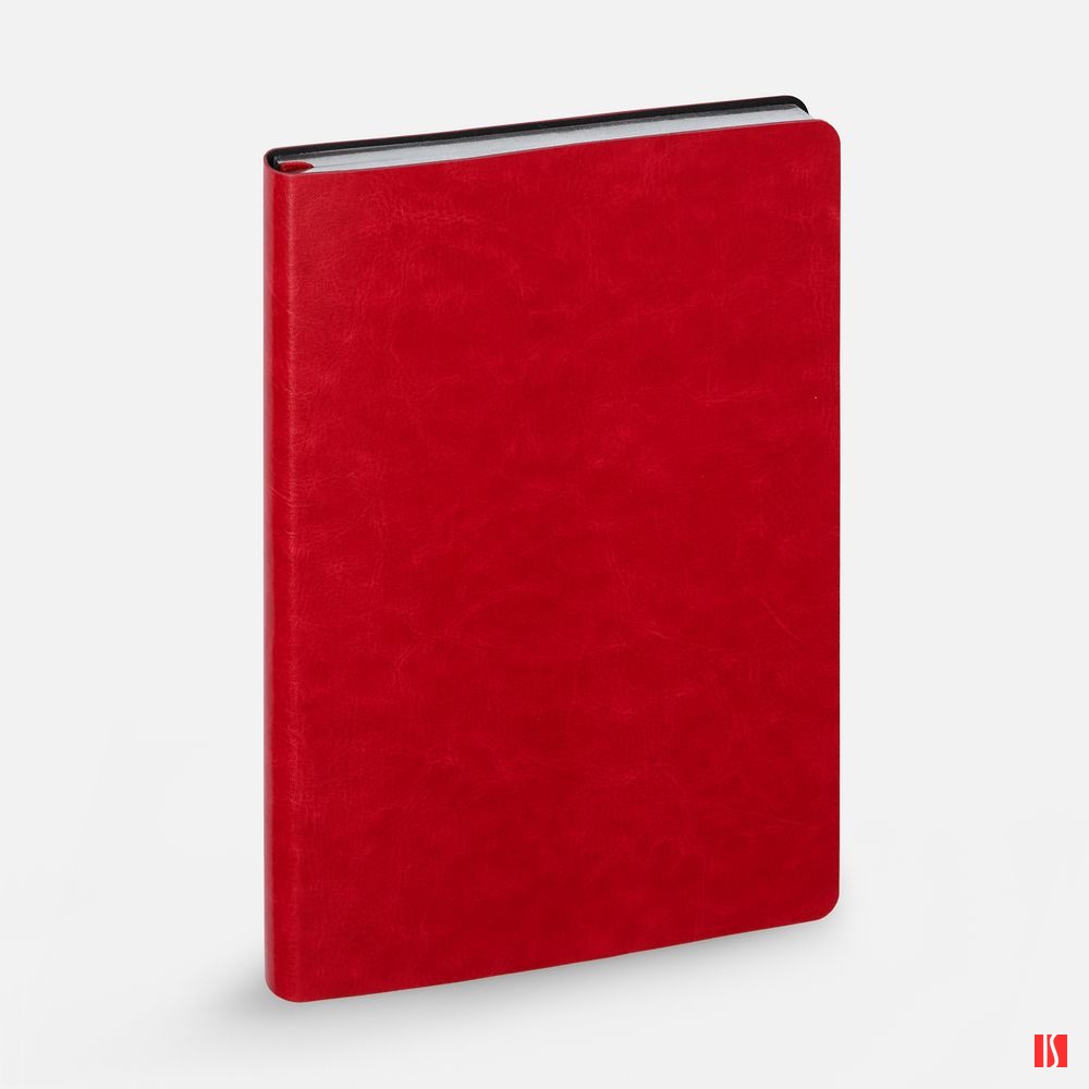 Ежедневник с гибкой обложкой, выполнен из материала Nebraska, красный PP, дополнен ляссе красного цвета.