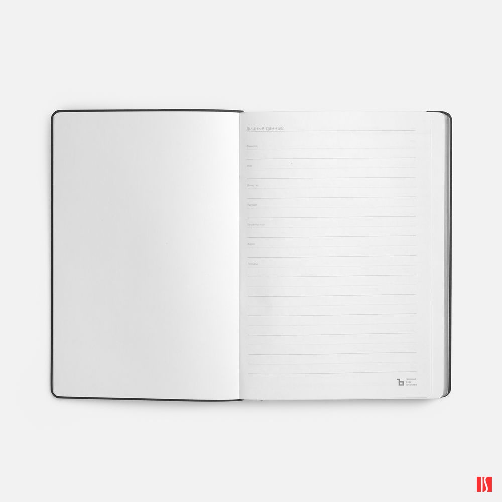 Заказать с нанесением логотипа от компании «Синтезис». Модная интерпретация статусного ежедневника — с металлизированным обрезом и гибкой обложкой.