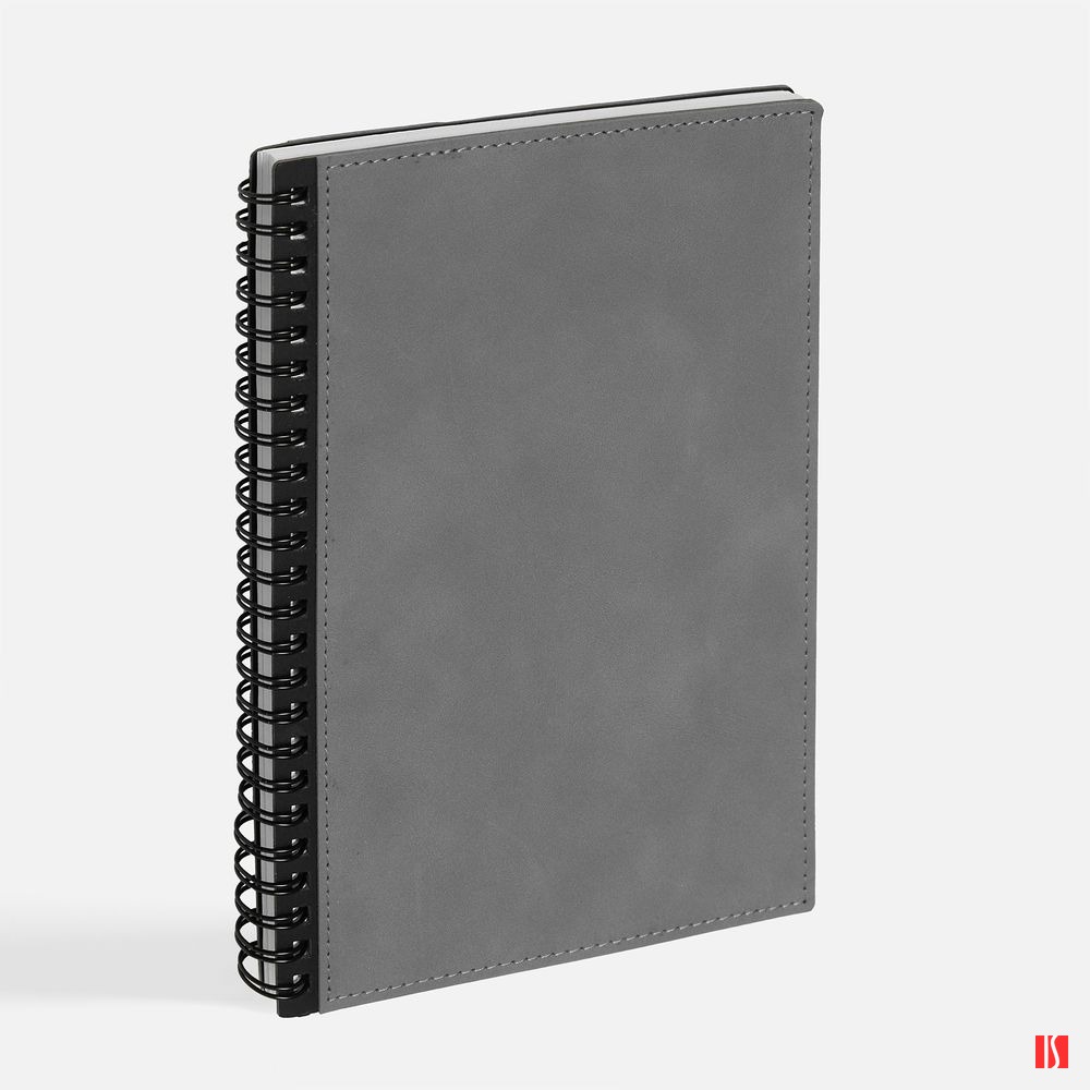 Ежедневник с интегральным переплетом и обстрочкой по периметру на открытой пружине.