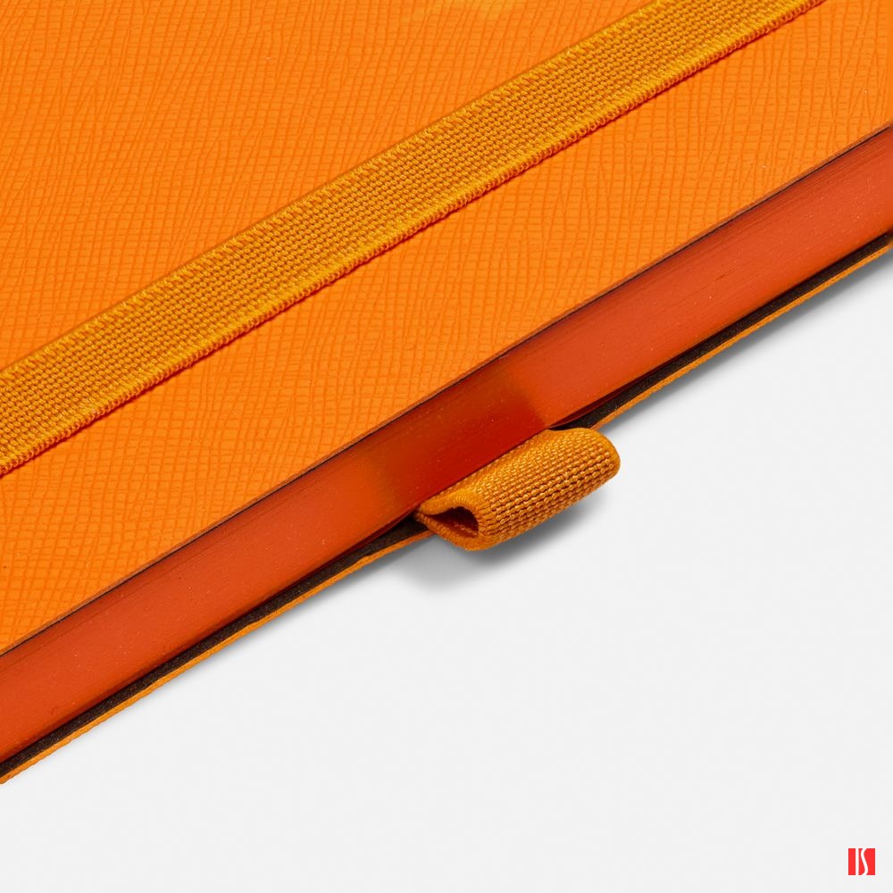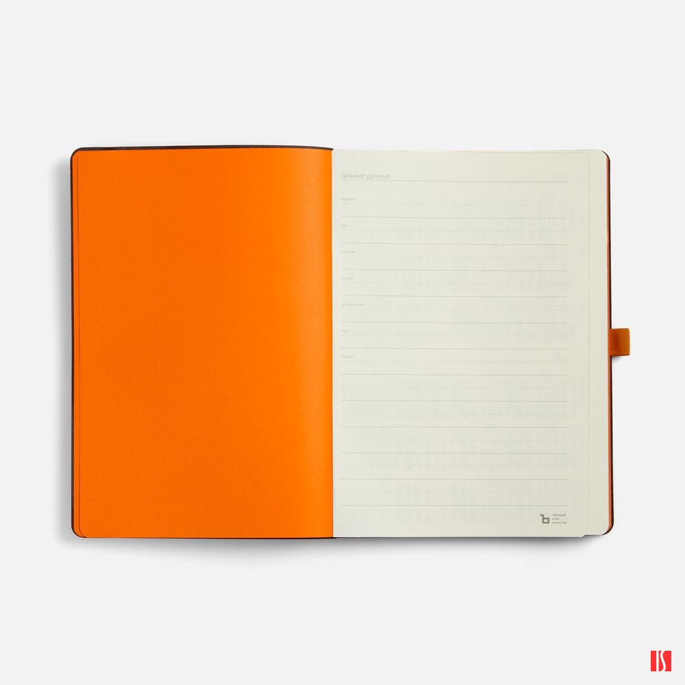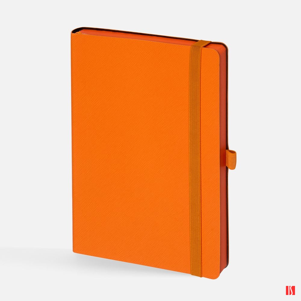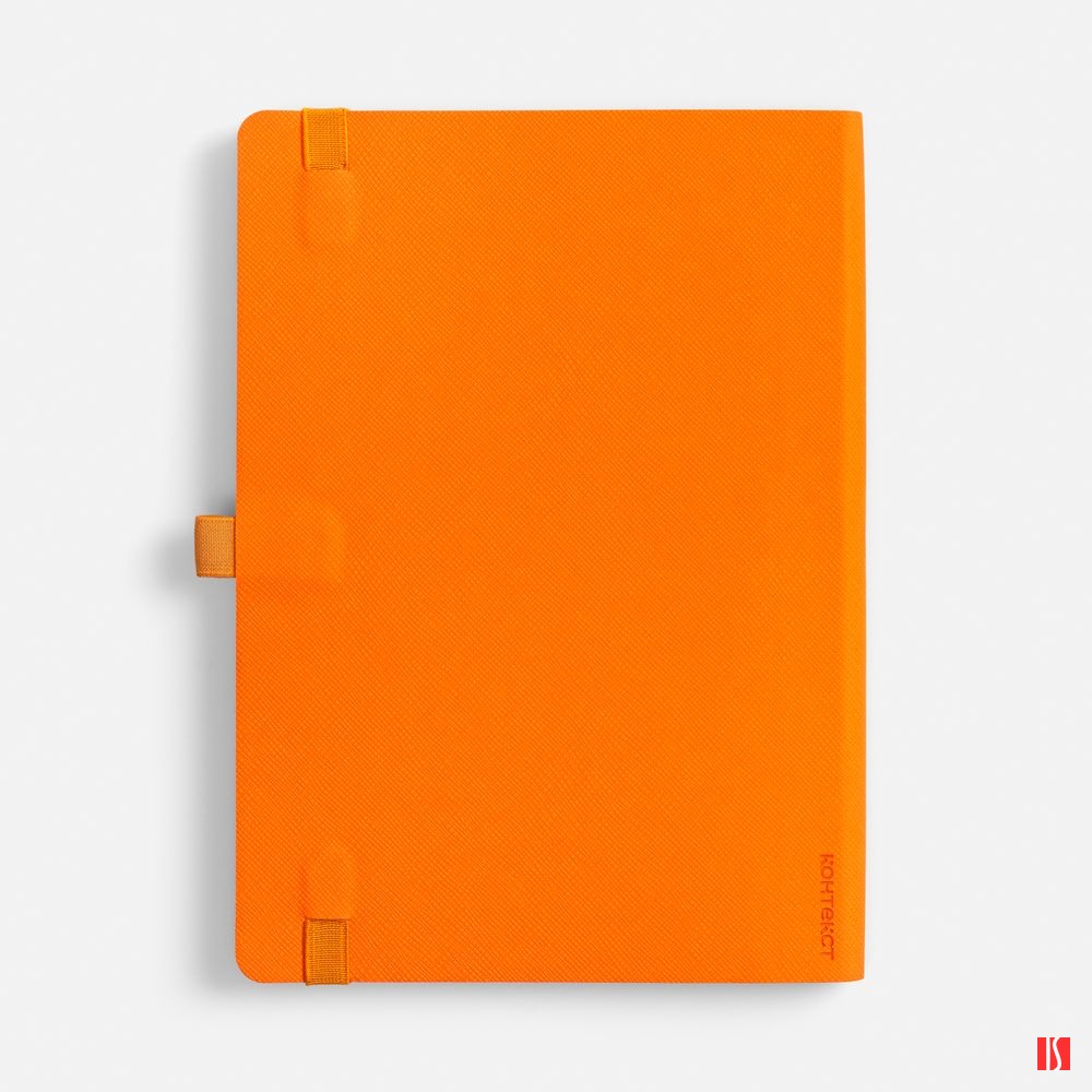 Ежедневник с гибкой обложкой, выполнен из материала Nice Touch, оранжевый ОО, дополнен цветными ляссе и петлей-резинкой для ручки.