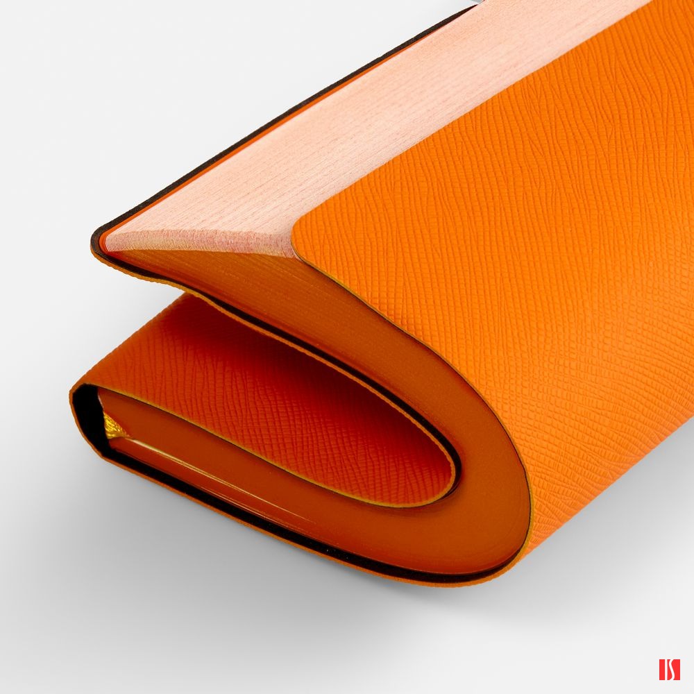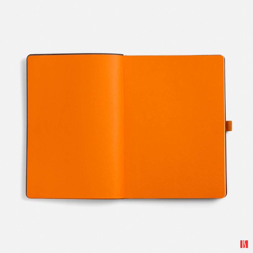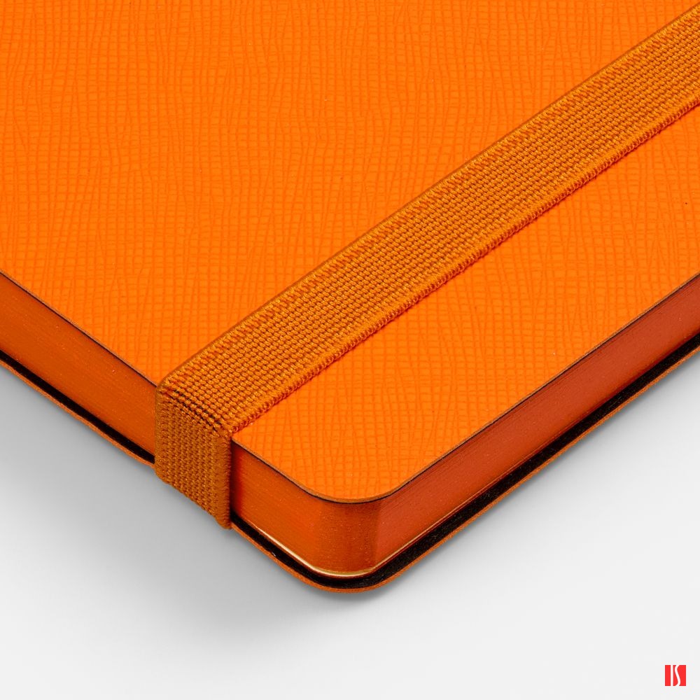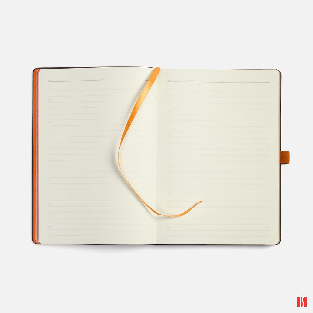 Ежедневник с гибкой обложкой, выполнен из материала Nice Touch, оранжевый ОО, дополнен цветными ляссе и петлей-резинкой для ручки.
