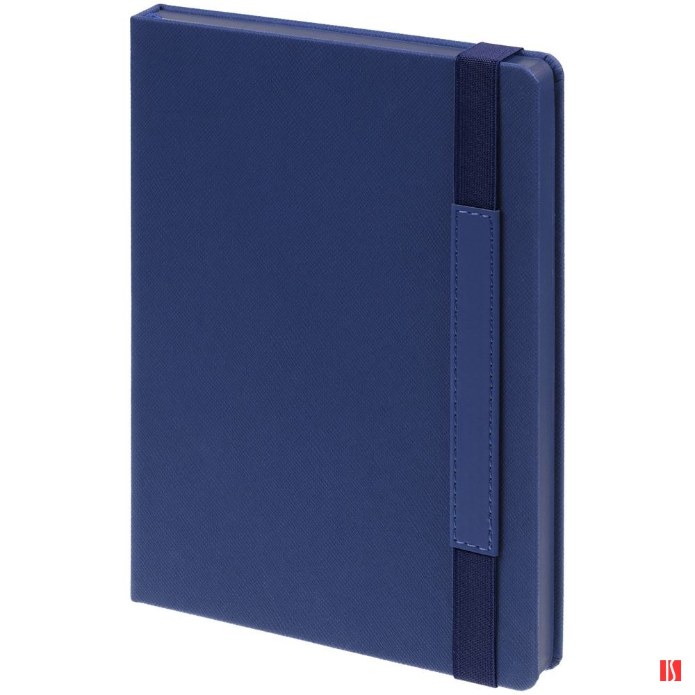 Ежедневник с твердой обложкой, выполнен из материала Nice Touch, синий, дополнен резинкой с лейблом из материала Soft Touch Ultra и ляссе в цвет обложки.