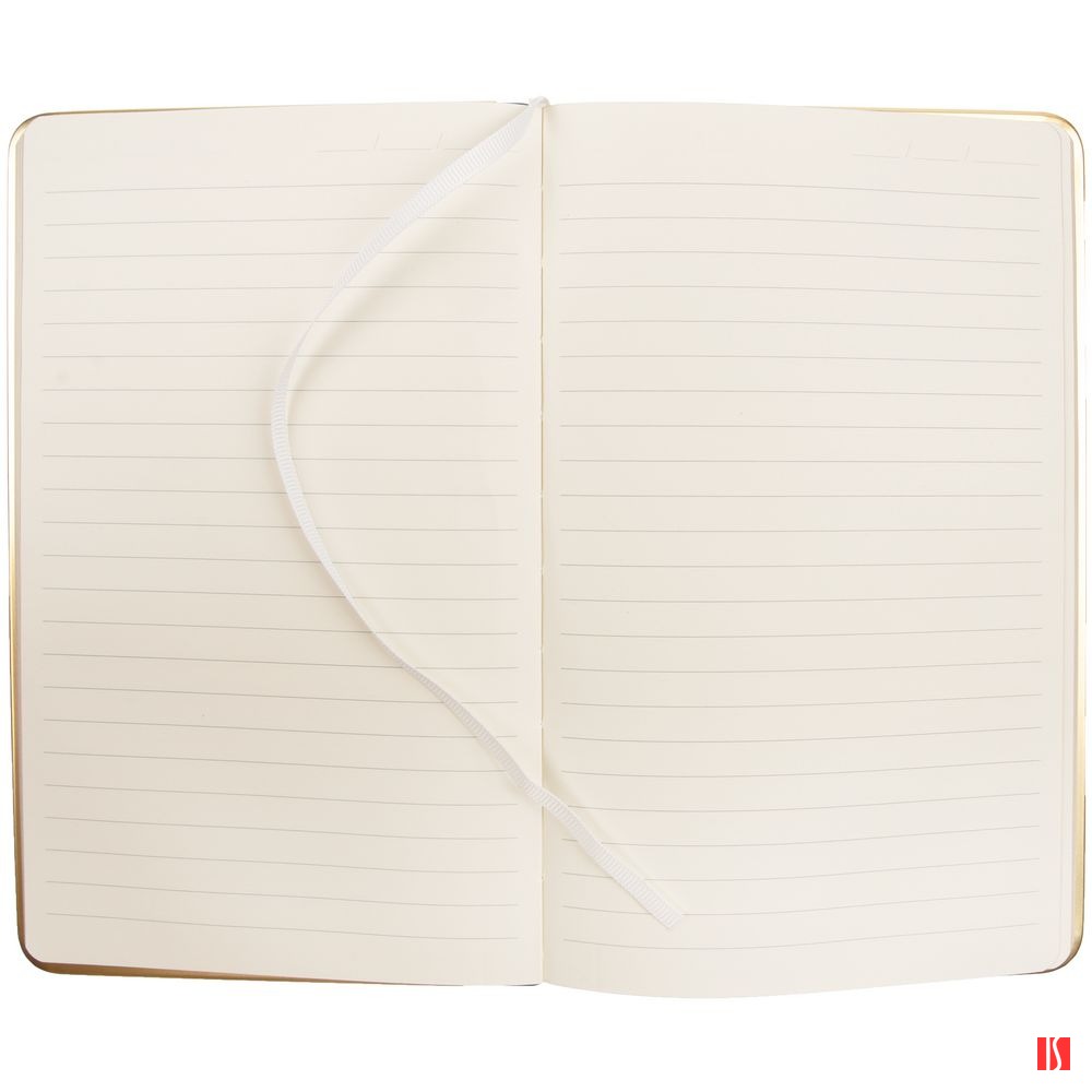 Заказать с нанесением логотипа от компании «Синтезис». Изящный ежедневник с зауженным блоком и стильными деталями — металлической окантовкой на обложке и металлизированным обрезом.