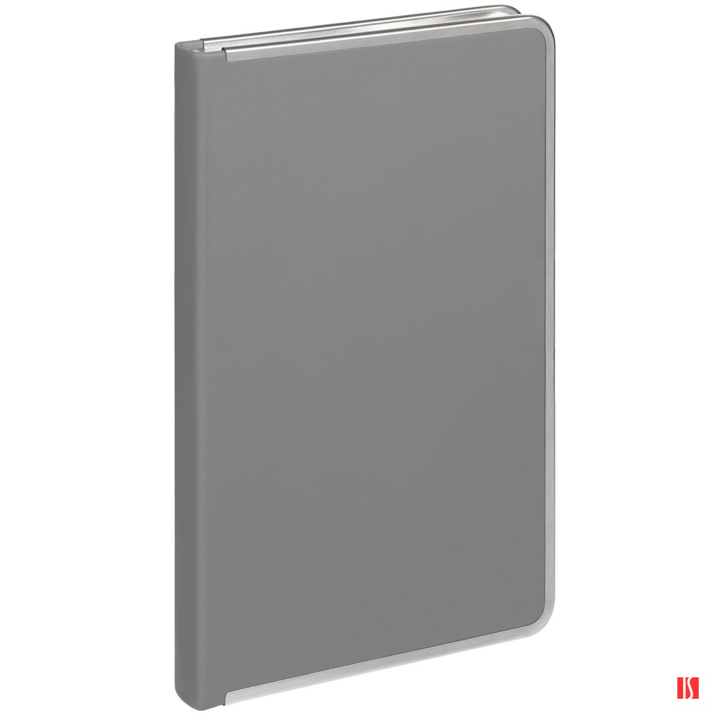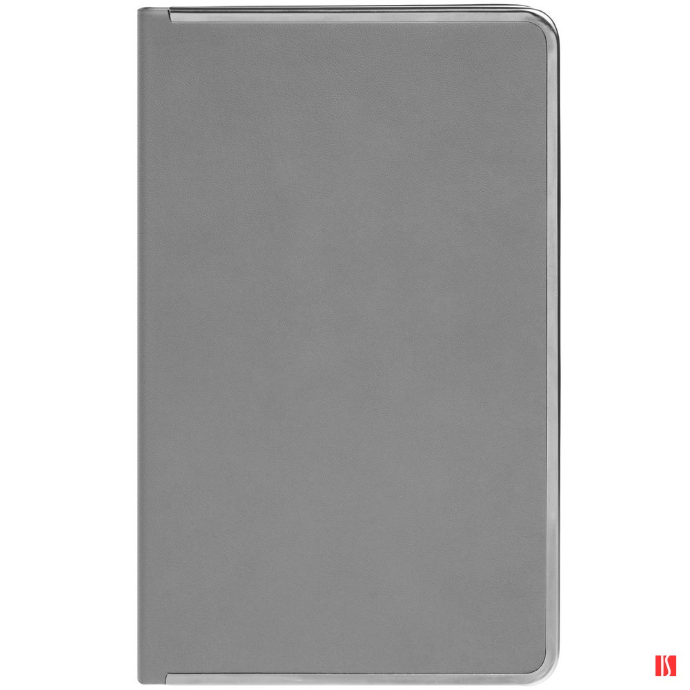 Заказать с нанесением логотипа от компании «Синтезис». Изящный ежедневник с зауженным блоком и стильными деталями — металлической окантовкой на обложке и металлизированным обрезом.