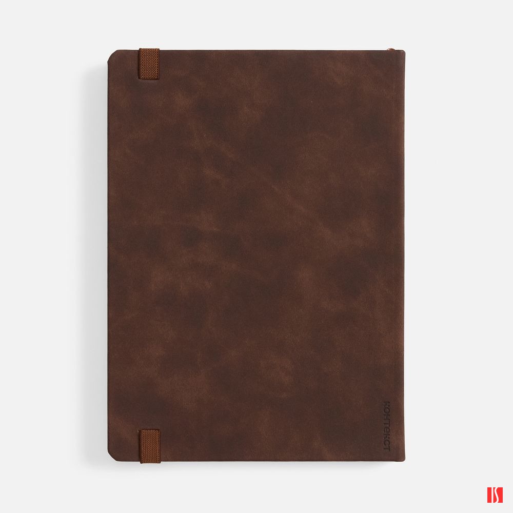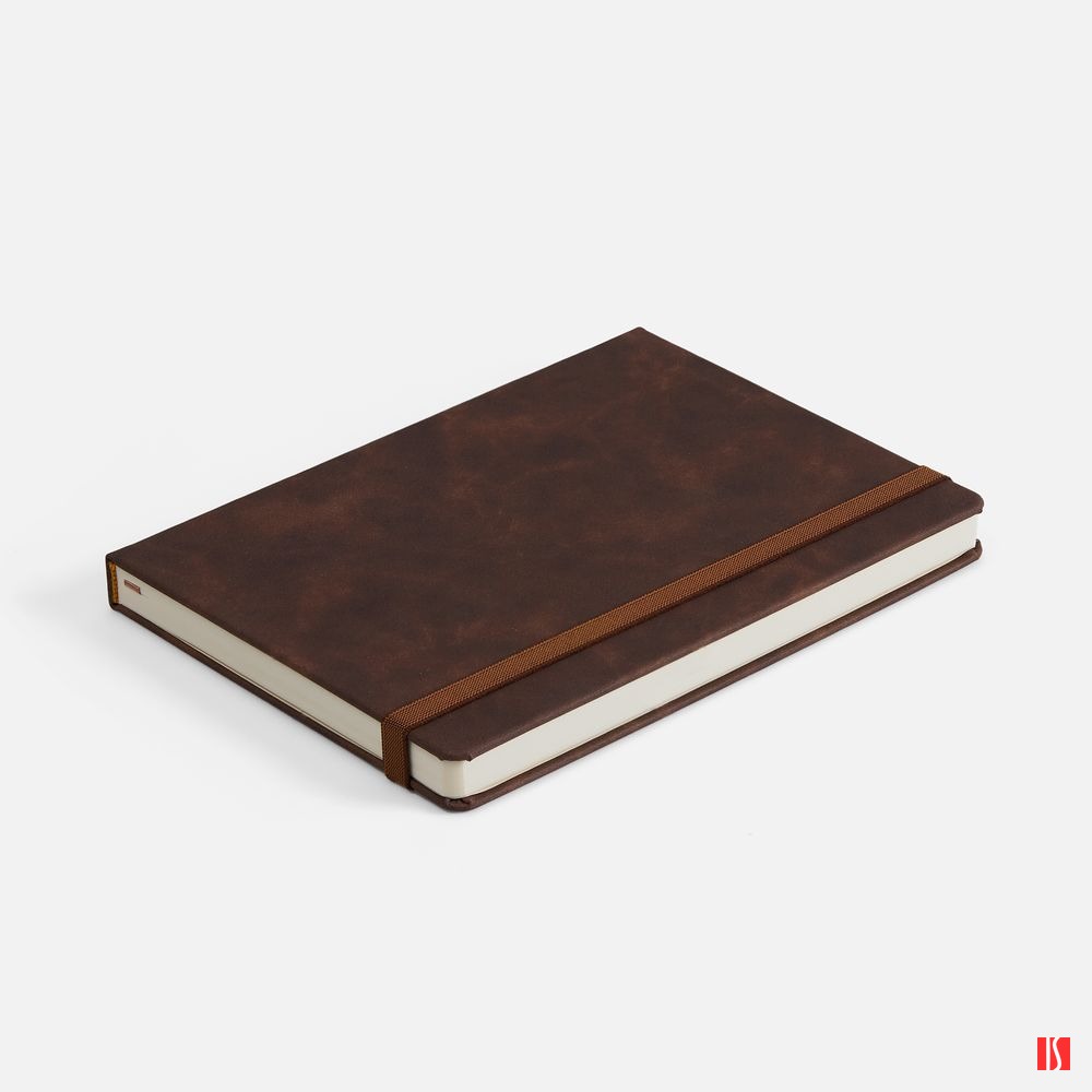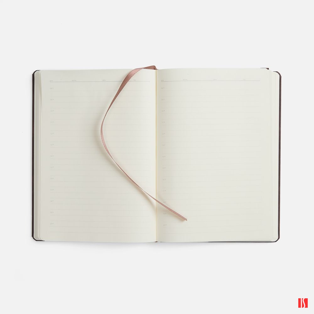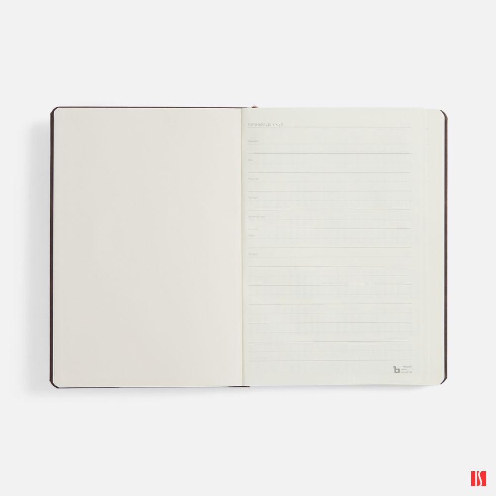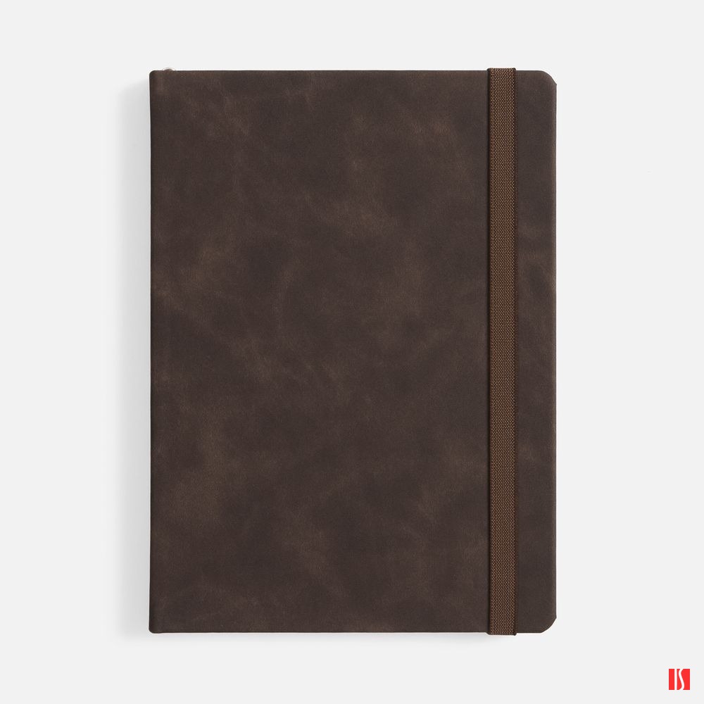 Ежедневник с твердой обложкой, выполнен из материала Nubuck Touch, темно-коричневый ZZ, дополнен ляссе темно-коричневого цвета.