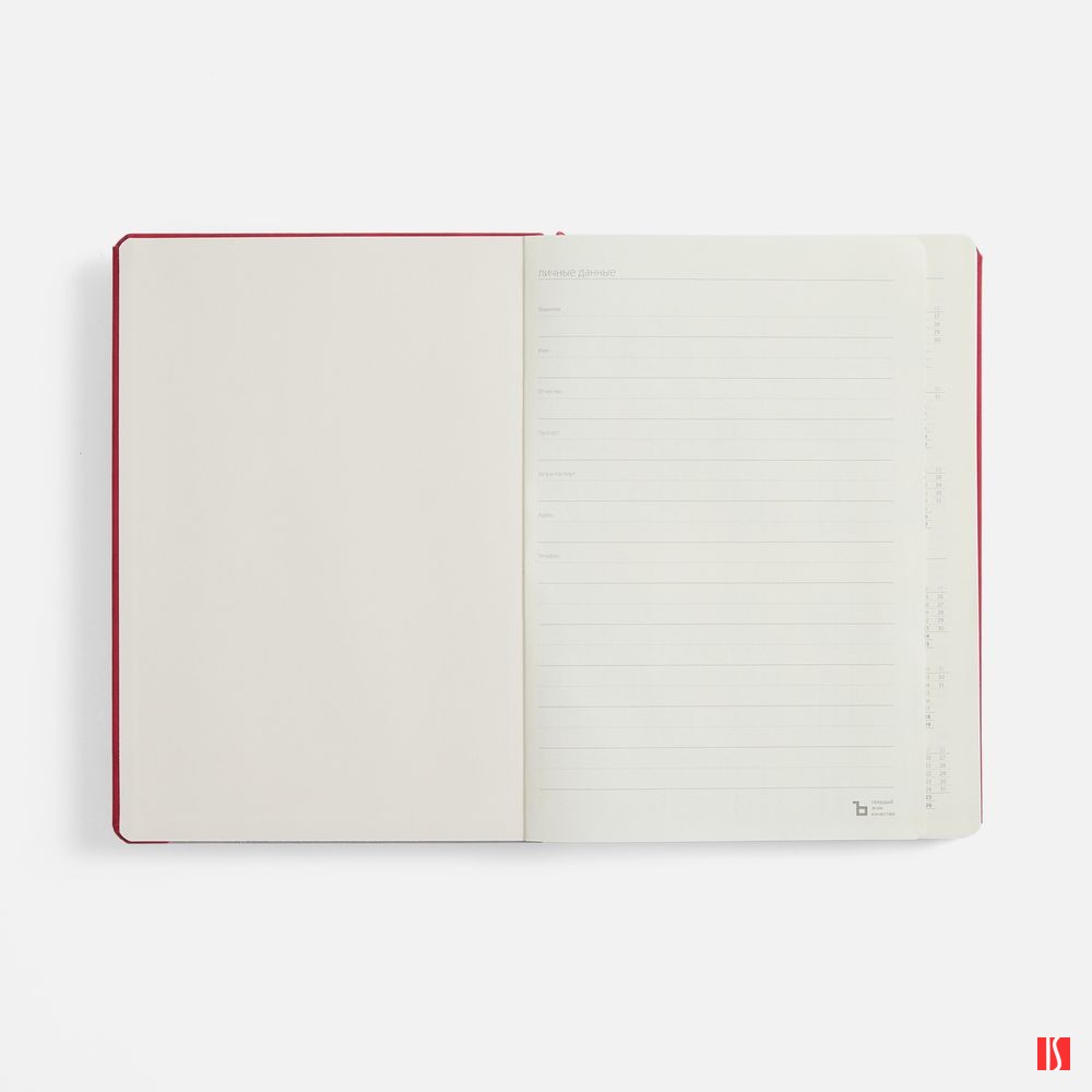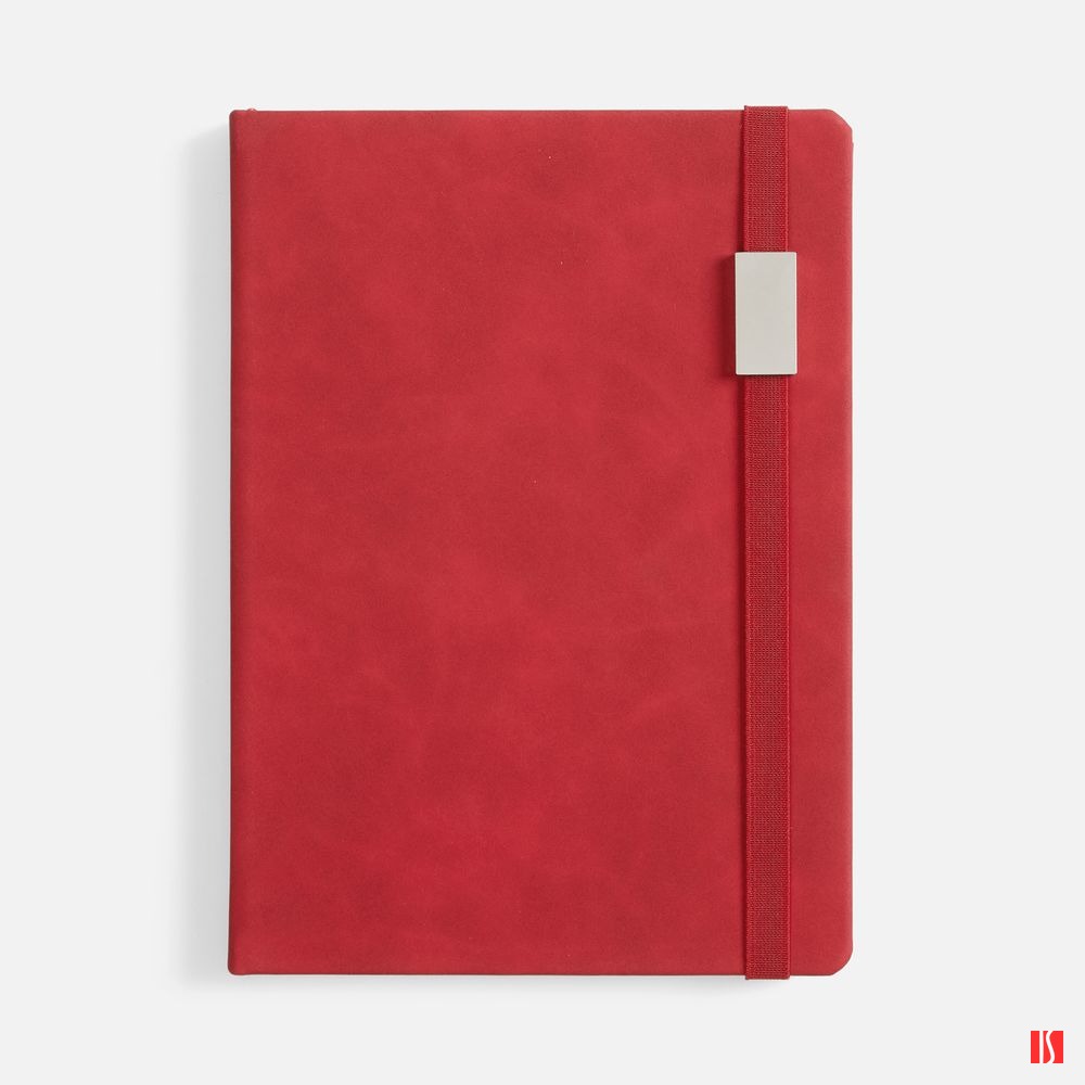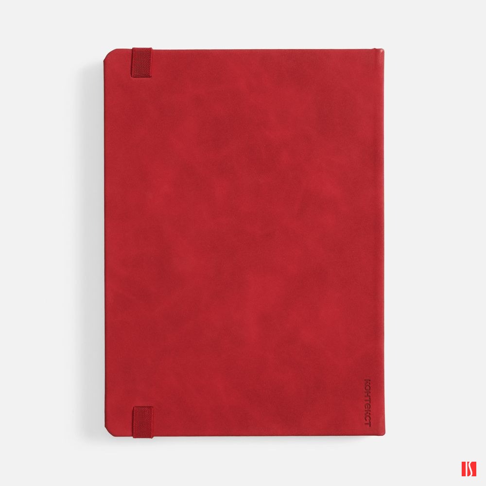 Ежедневник с твердой обложкой, выполнен из материала Nubuck Touch, красный PP, дополнен ляссе в цвет обложки.