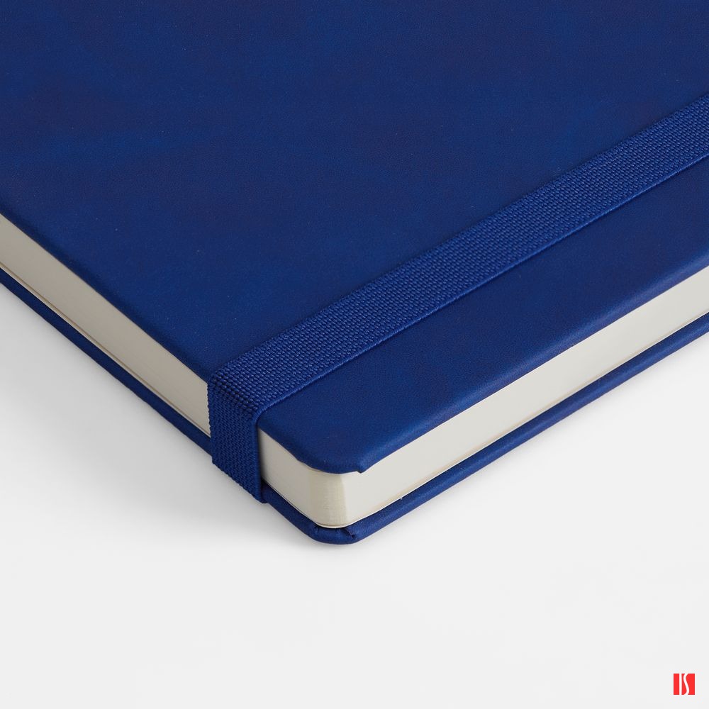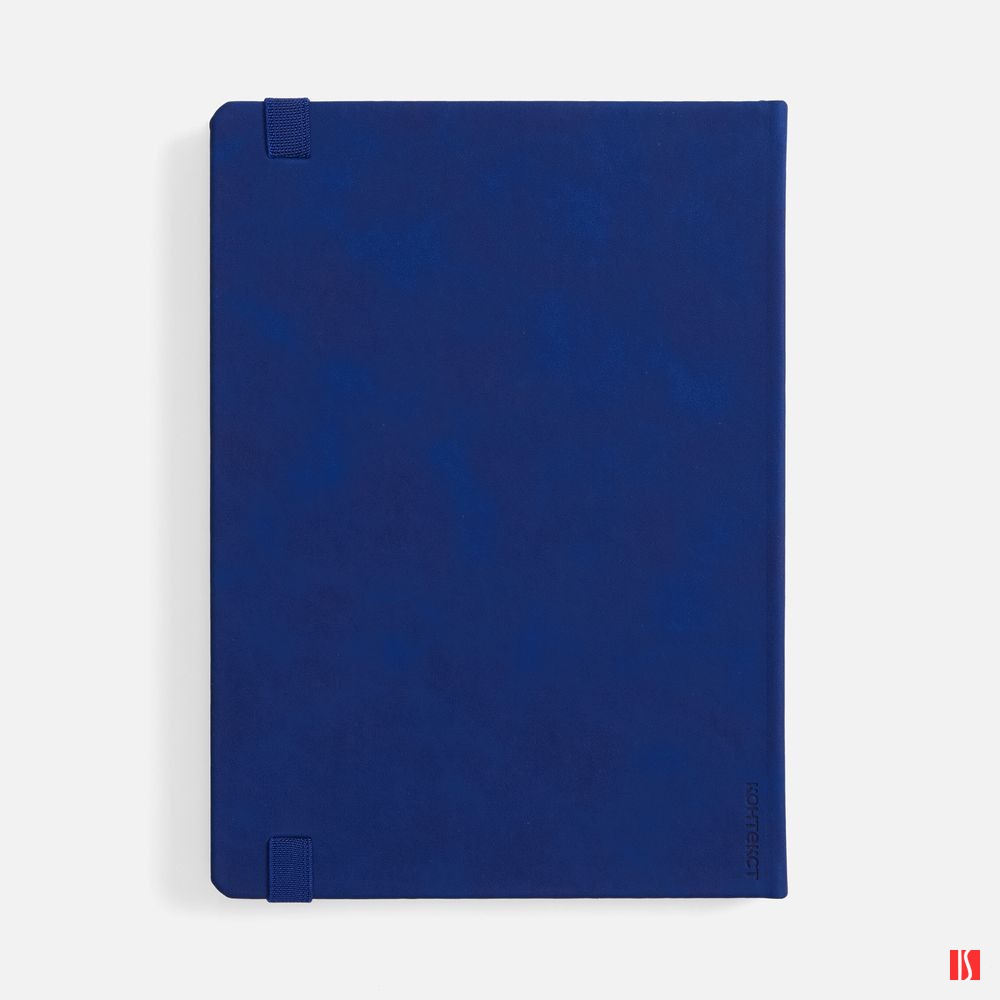 Ежедневник с твердой обложкой, выполнен из материала Nubuck Touch, темно-синий ХХ, дополнен ляссе темно-синего цвета.