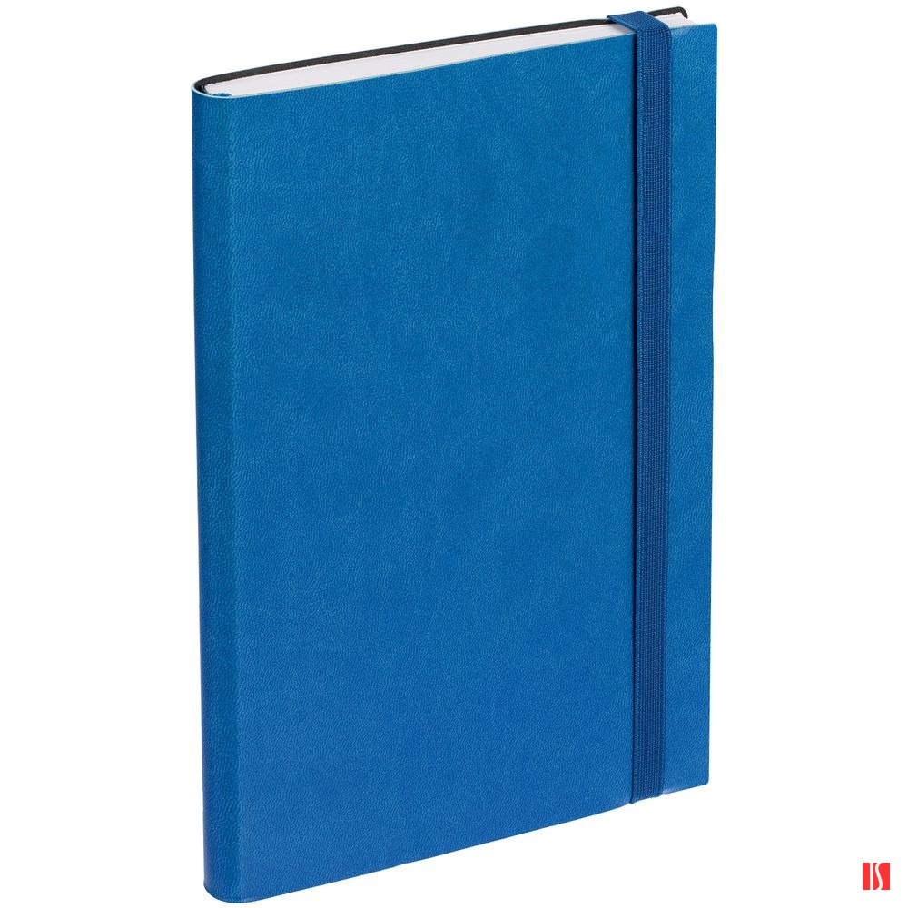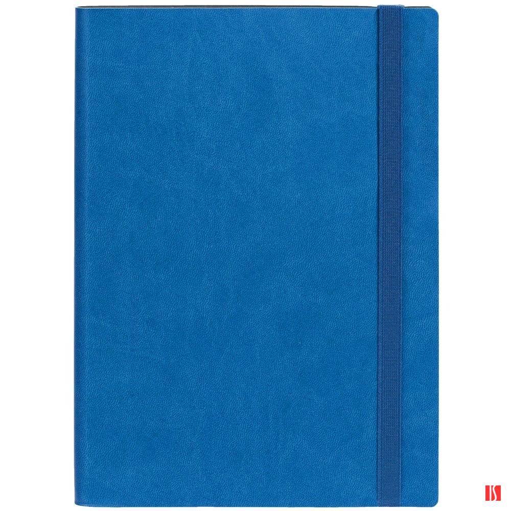 Ежедневник с гибкой обложкой, выполнен из материала Latte, синий НН, дополнен резинкой шириной 1 см, капталом и ляссе синего цвета.