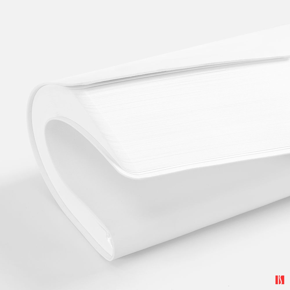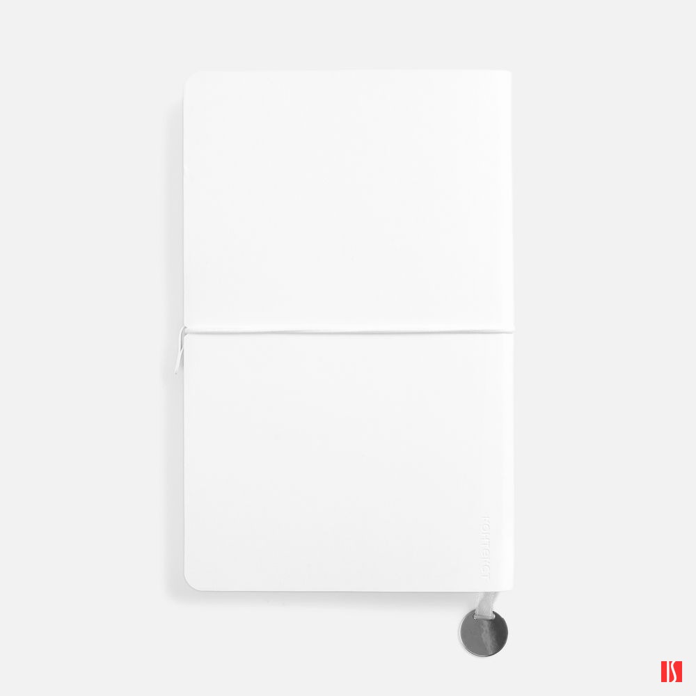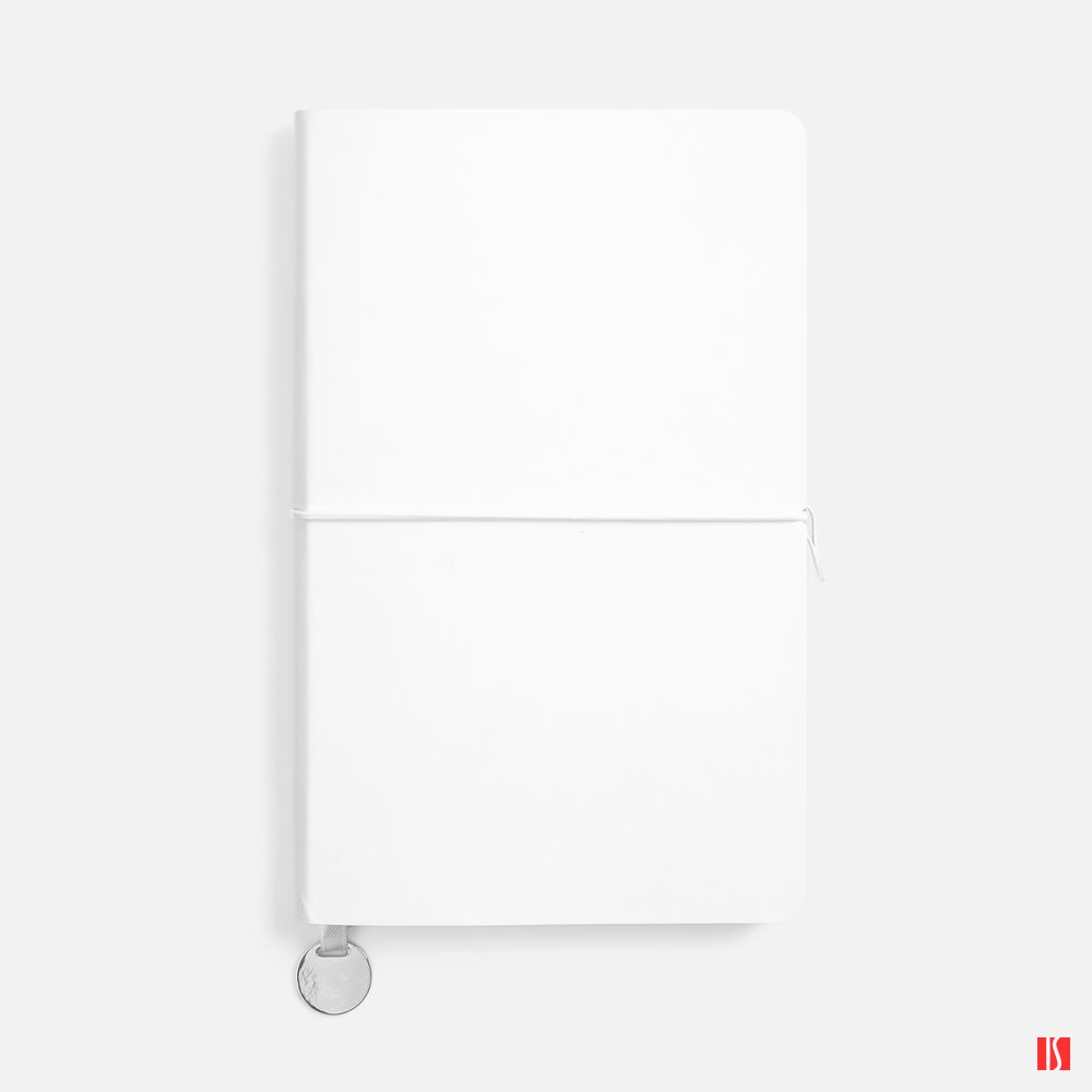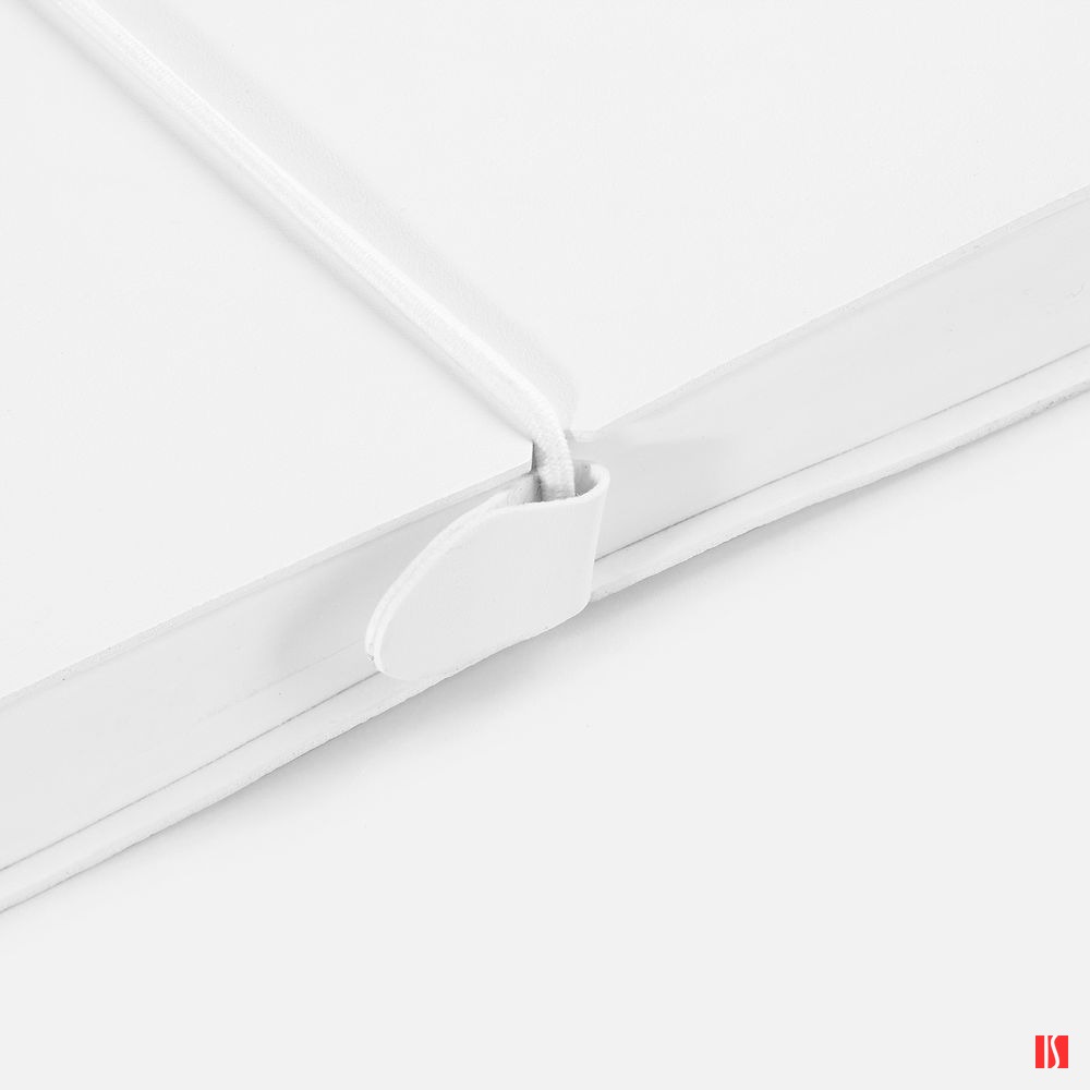 Ежедневник с гибкой обложкой, выполнен из материала Waltz, белый BB, дополнен ляссе в цвет обложки с металлическим шильдом.