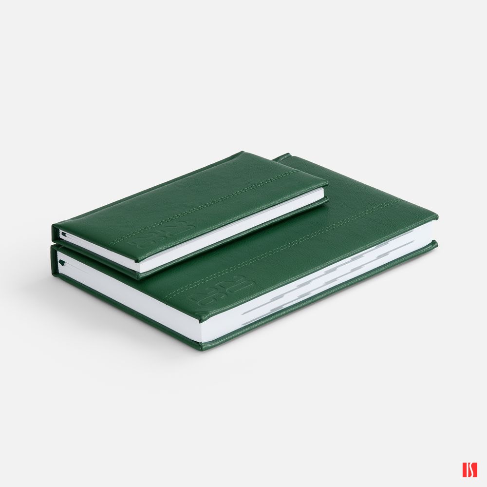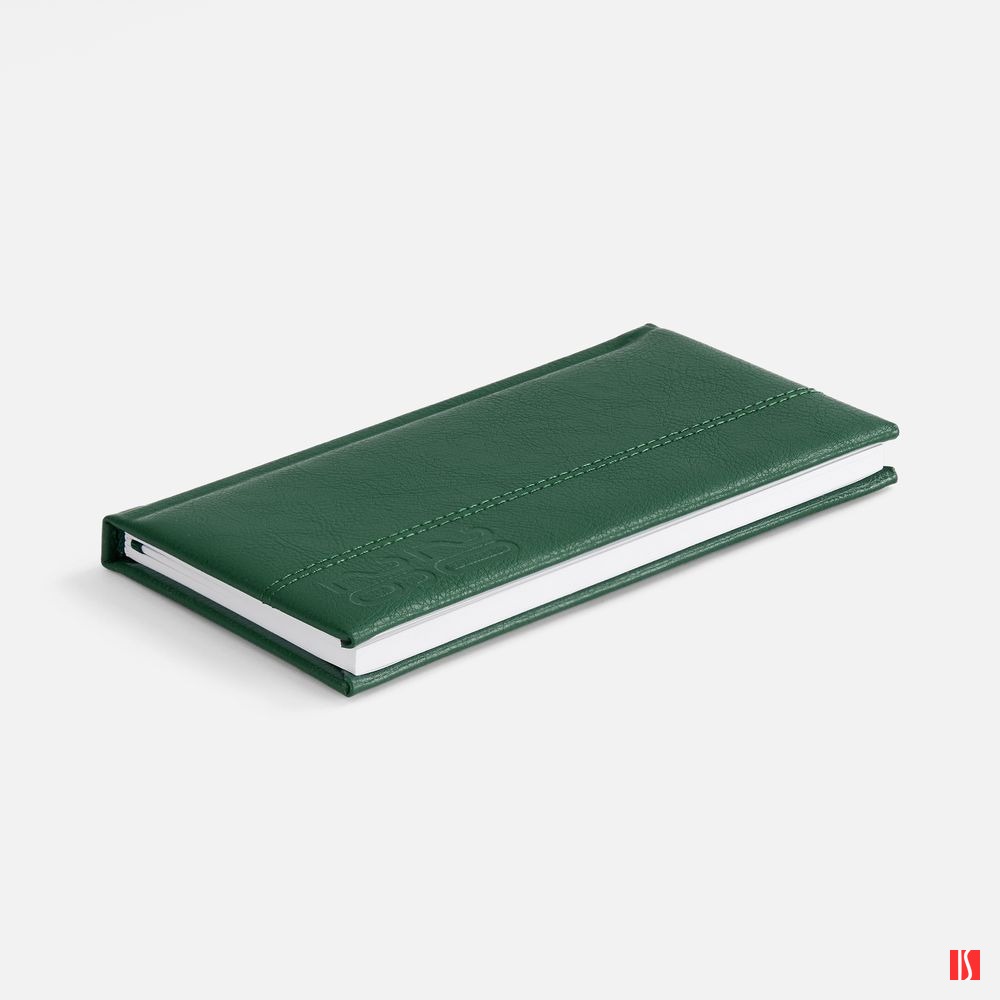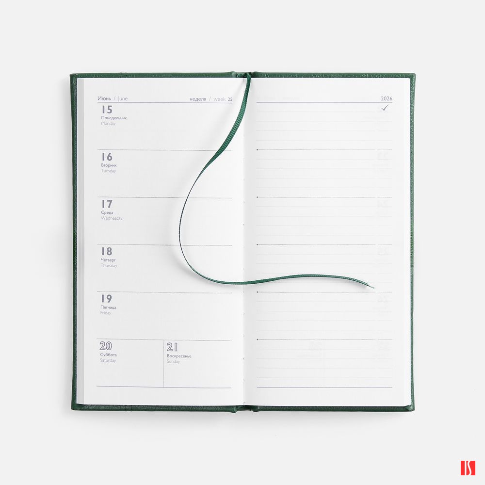 Еженедельник с твердой обложкой с поролоном из искусственной кожи, дополнен декоративной строчкой, капталом и ляссе в цвет.