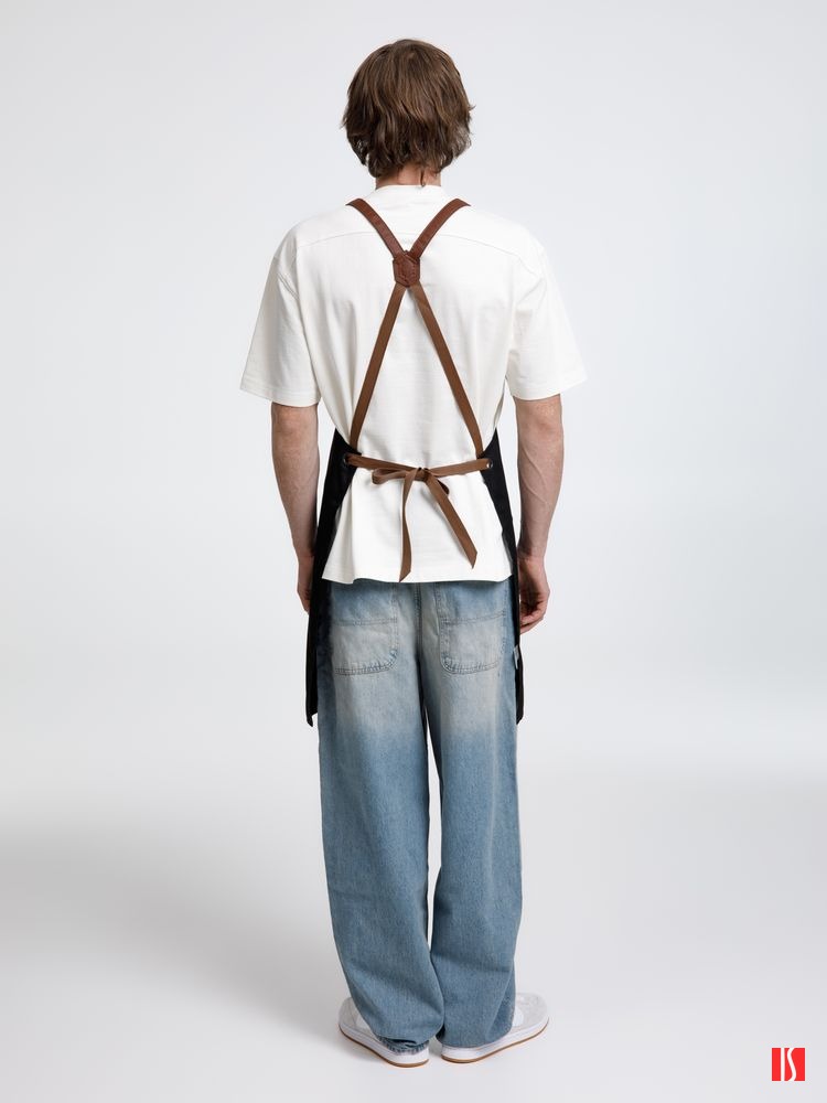 Универсальный фартук бармена, бариста, официанта. Может служить отличным подарком и для людей творческих профессий — художников или скульпторов — и всех, кто любит мастерить что-то своими руками.