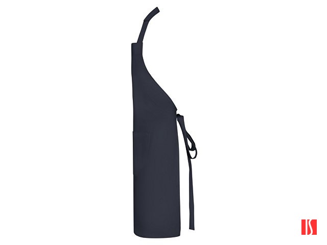 Длинный твиловый фартук из переработанного полиэстера и хлопка. Шейный ремешок с регулируемой застежкой. Завязки по бокам. Два передних кармана. Заказать с нанесением логотипа от компании «Синтезис».