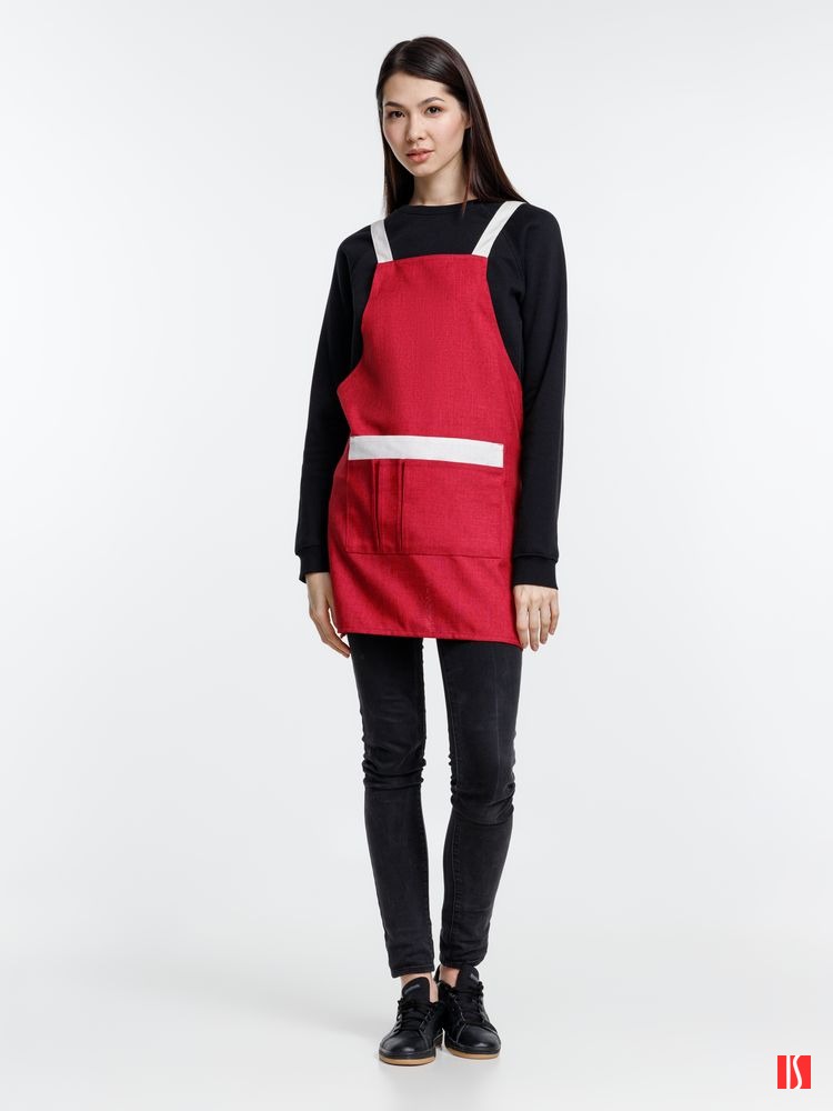 - Фартук с контрастной отделкой и перекрестными регулируемыми лямками
