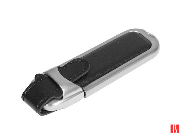Флеш-накопитель с массивным классическим корпусом, 128 Гб. Кожаный корпус, металлические вставки.