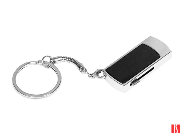 Флеш-накопитель прямоугольной формы, выдвижной механизм с мини чипом, 16 Гб. Металлический корпус с пластиковой вставкой.