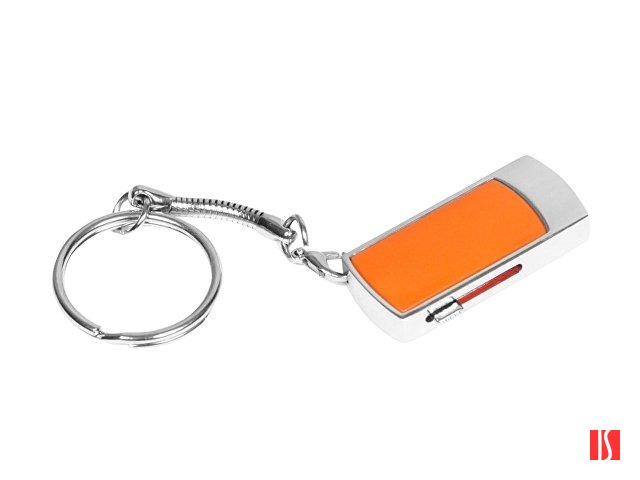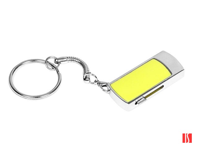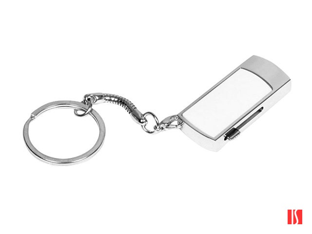 Флеш-накопитель прямоугольной формы, выдвижной механизм с мини чипом, 32 Гб. Металлический корпус с пластиковой вставкой.