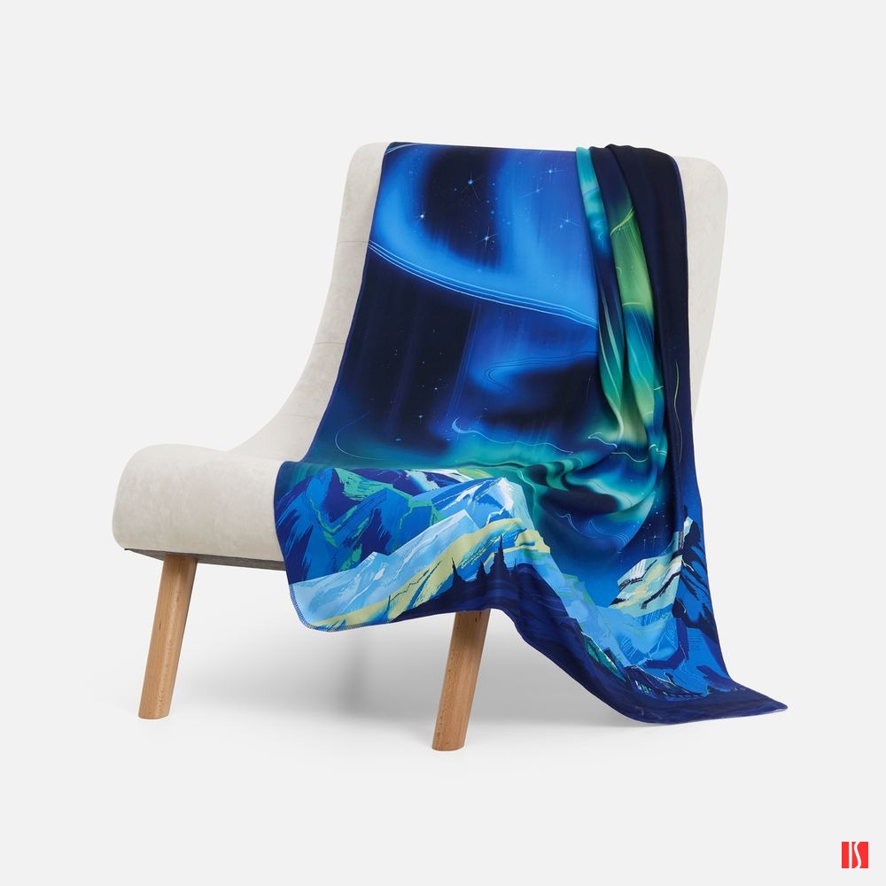 Чтобы прикоснуться к этой мечте Севера, можно начать с живописного пледа «Сияй!» — это и пожелание на будущий год, и способ стать ближе к ускользающей красоте авроры. И может, плед с таким завораживающим, словно акварельным пейзажем поможет по-настоящему почувствовать сияние — и сиять так ярко, как не сиял никто.