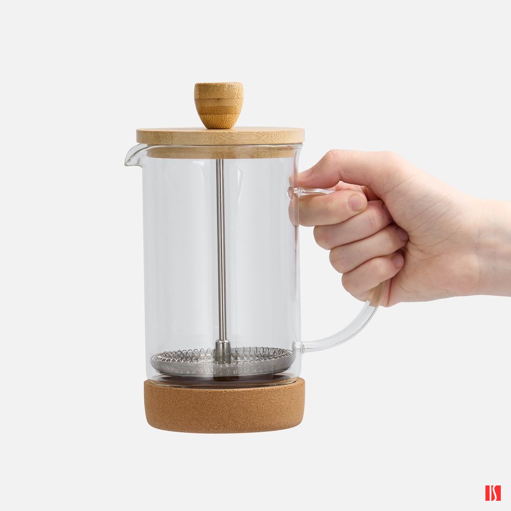 Просто оцените его изящный дизайн и продуманную функциональность: прозрачное боросиликатное стекло позволяет легко контролировать процесс заваривания, а натуральные деревянная крышка и пробковая подставкадобавляют стиля, практичности и экологичности.