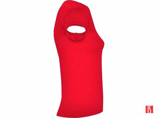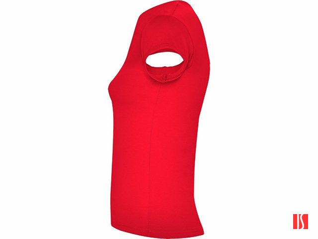 Приталенная женская футболка с круглым вырезом и v-образным разрезом спереди. Двойная отстрочка по рукавам и низу изделия.