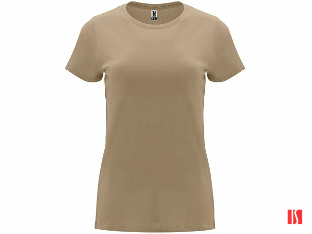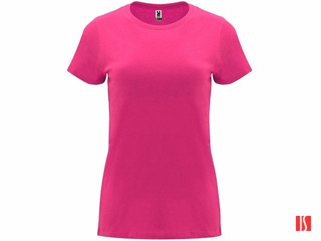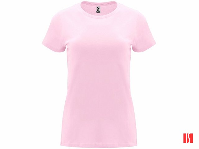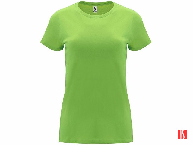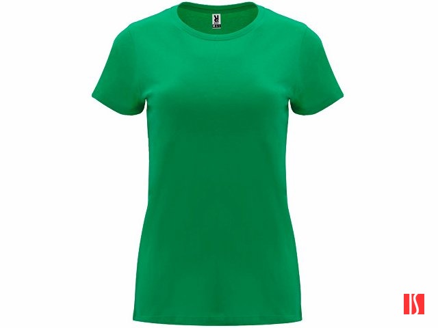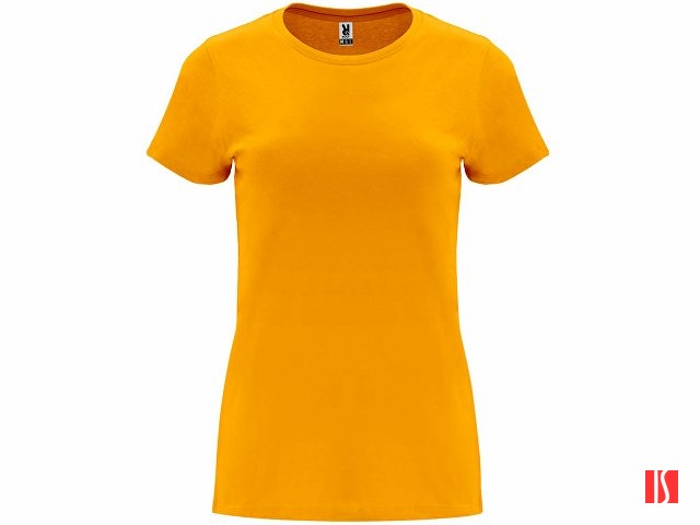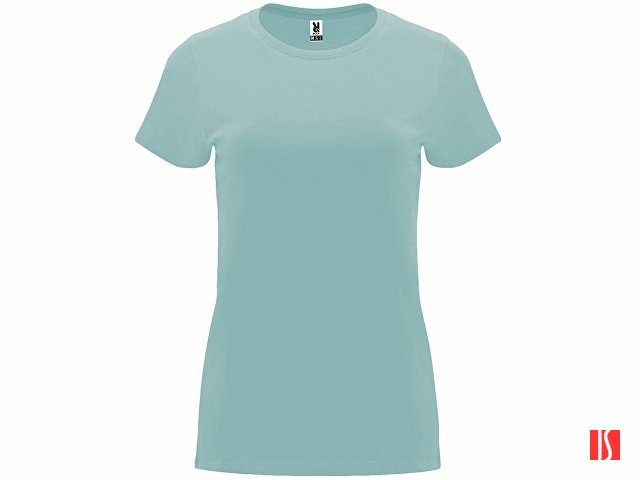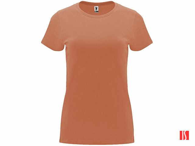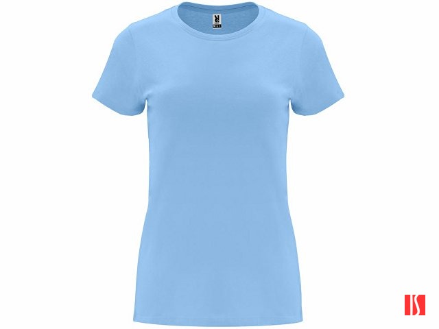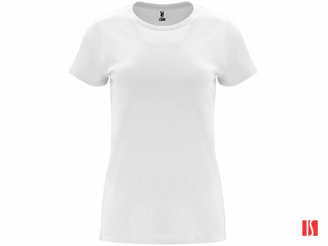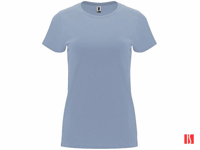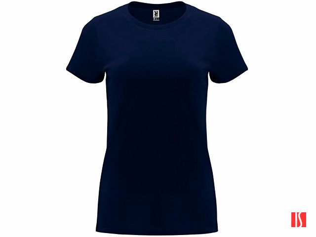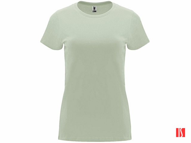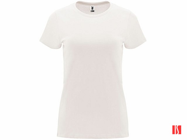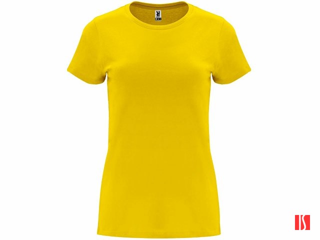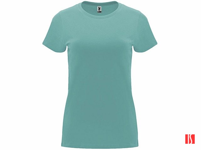 Женская приталенная футболка. Круглый вырез горловины обработан рибом 1х1. Шов горловины укреплен тесьмой. Заказать с нанесением логотипа от компании «Синтезис».