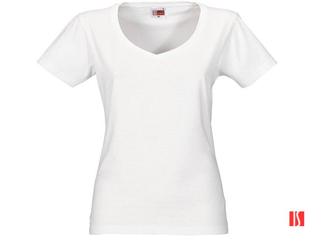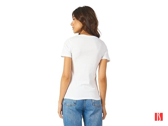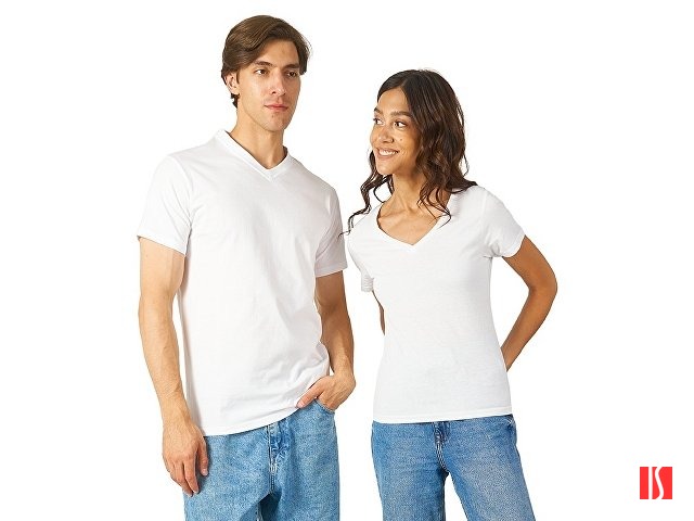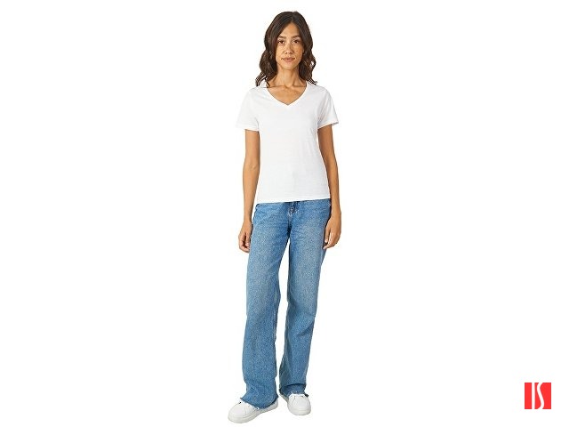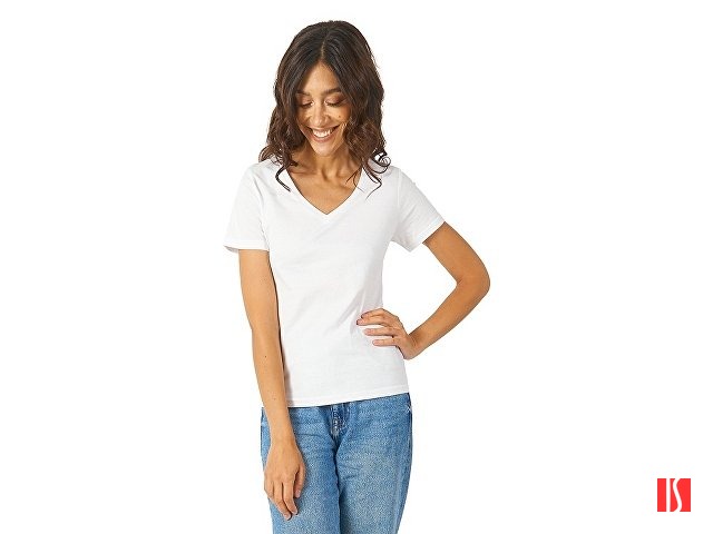 Женская футболка из натурального хлопка с элегантным V-образным вырезом. Материал отлично подходит для нанесения рекламной информации. Натуральная ткань не вызывает раздражения кожи. Заказать с нанесением логотипа от компании «Синтезис».