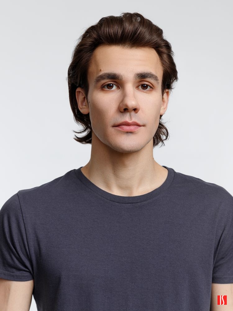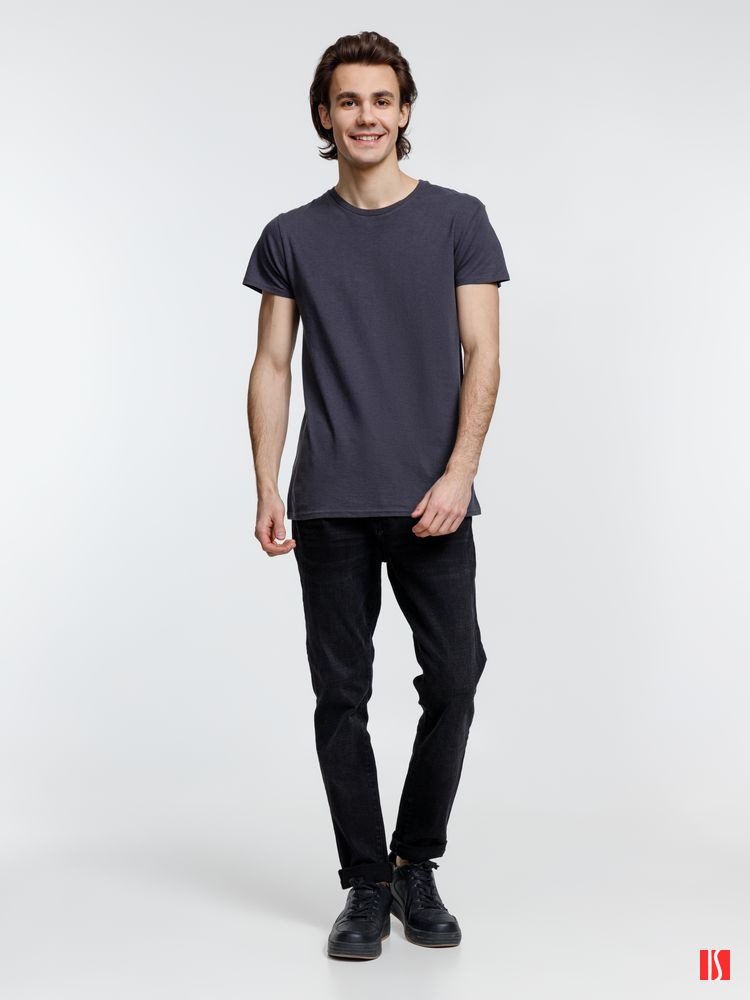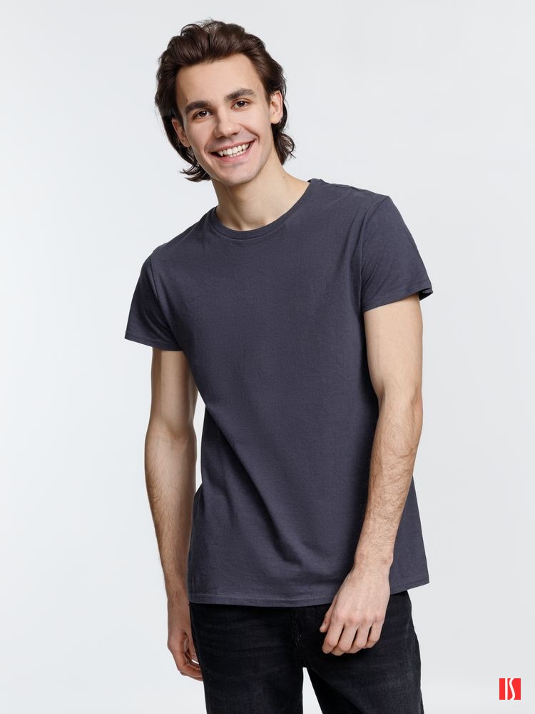Заказать с нанесением логотипа от компании «Синтезис». Мужская бесшовная футболка из органического хлопка с круглым вырезом.