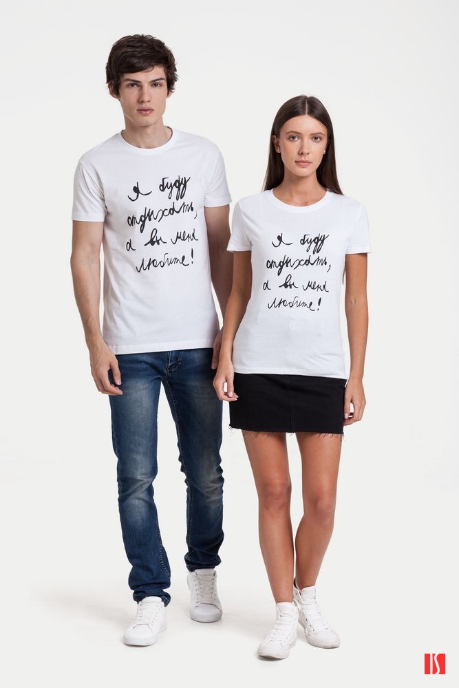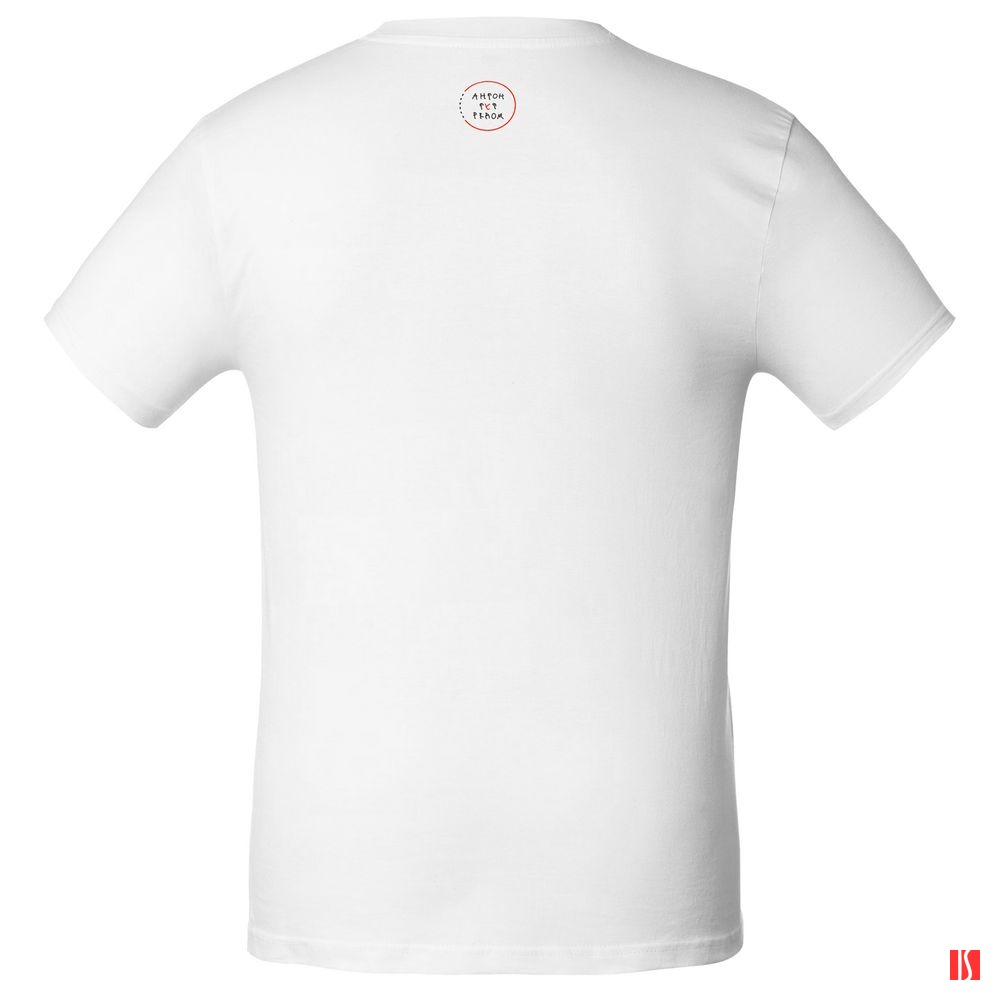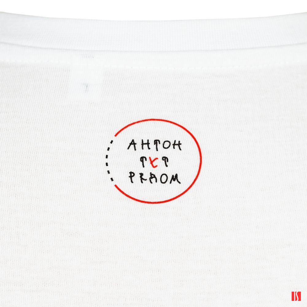 Радостно видеть, как из наброска, меткой фразы, рождаются реальные вещи, как идея обретает форму. Для студентов инклюзивных мастерских «Антон тут рядом» это не только важный творческий опыт, но и возможность заниматься любимым делом и находить друзей — 10% от продажи изделий идет на поддержку работы фонда.Кроеная футболка (с боковыми швами). Приталенная облегающая модель, зауженный книзу рукав, укрепляющая тесьма по вороту, воротник связан резинкой с эластаном.