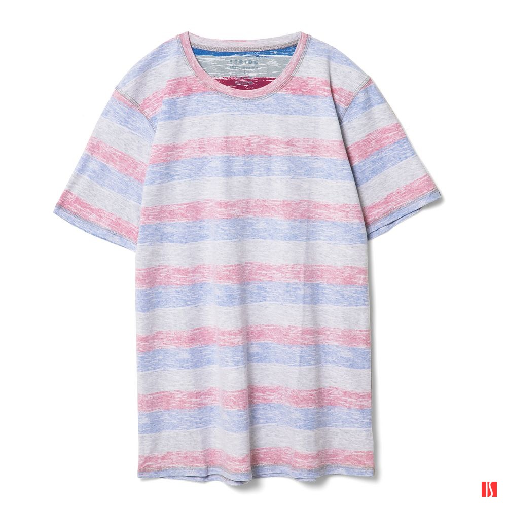 Заказать с нанесением логотипа от компании «Синтезис». Двусторонняя мужская футболка с круглым вырезом и плоскими швами.