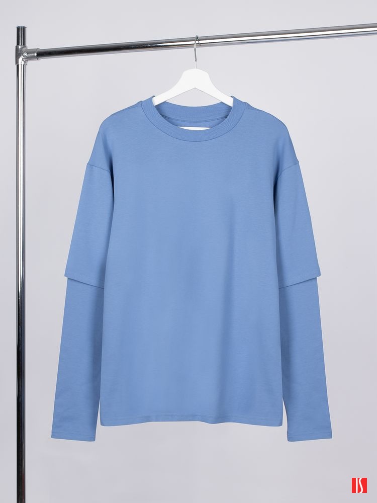Футболка оверсайз с двойным рукавом Kosmos, синяя