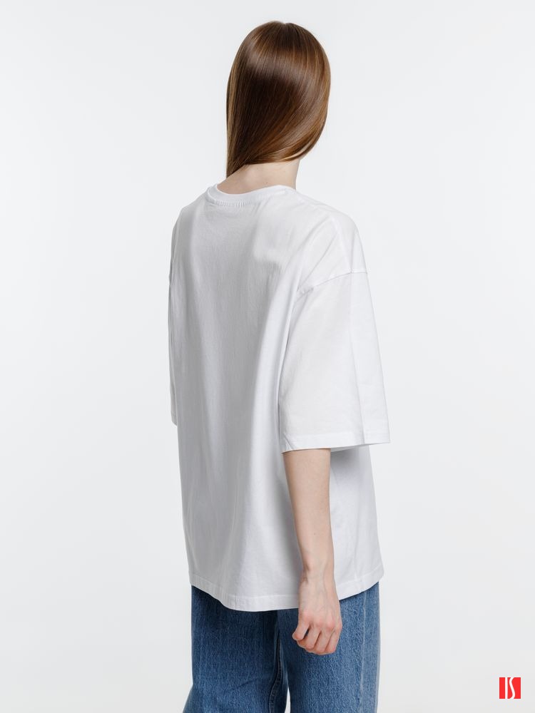 Заказать с нанесением логотипа от компании «Синтезис». Футболка унисекс посадки оверсайз для тех, кто следит за современными трендами, любит комфорт и свободный крой.
